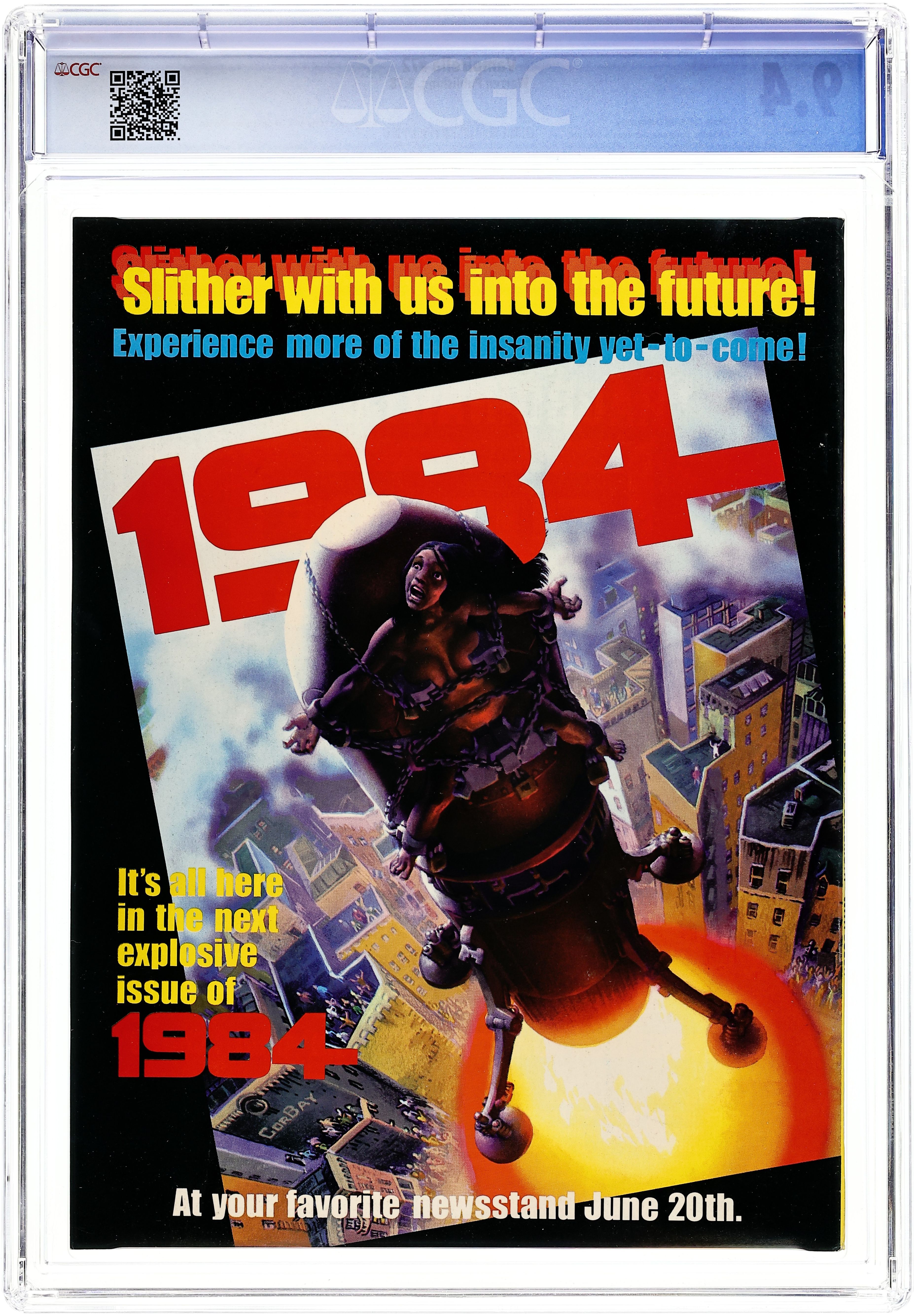 Stories in this issue include: "The Beauty and the Behemoth" (starring Vampirella); "The Eyes Have it"; "Fruitcake"; "Scheherazade" (in full color); "Invasion of the Cyclops Monsters"; and "A Nightmare for Mrs. Agatha." Written by Bill DuBay, Rafael Auraleon, and others. Art by Jose Gonzalez, Esteban Maroto, Jose Ortiz, and others. This month Joe Brancatelli's column on comic books is called "Death by the Numbers." Back cover ad for 1984 features art by Richard Corben. Cover art by Enrich Torres. Cover price $1.50. Grade: CGC 9.4 explanation of grade Condition: Used (collectible)