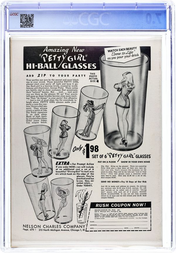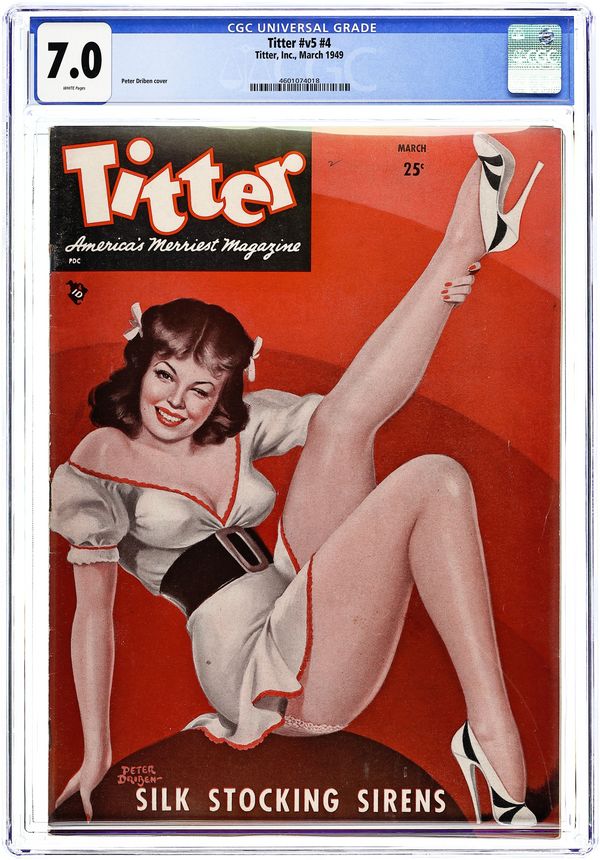 Volume 5, Issue 4 - March, 1949. Painted cover by Peter Driben. 8" x 11.5", 58 pages, B&W. -MATURE READERS- Cover price $0.25. Grade: CGC 7.0 explanation of grade Condition: Used (collectible)