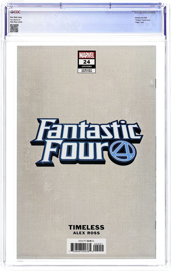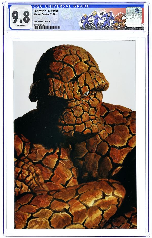 Cover by Alex Ross. Written by Dan Slott and Donny Cates. Art by Paco Medina, Greg Land and Jay Leisten. Hey, remember that time Iceman replaced the Human Torch as a member of the Fantastic Four? No? Well, Johnny Storm sure remembers! And now it's time to let everybody else in on the secret of the Fantastic Four story we were never supposed to talk about! Don't miss the revelations in "Cold Snap" by Dan Slott and Paco Medina. Plus: Thor in the bonus Fortnite/Marvel crossover story "Nexus War" by Donny Cates, Greg Land and Jay Leisten. Issue also includes a 2-page tribute to actor Chadwick Boseman by Ta-Nehisi Coates and Brian Stelfreeze. 44 pages, full color. Rated T Cover price $3.99. Grade: CGC 9.8 explanation of grade Condition: Used (collectible)