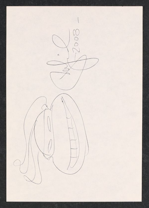 - Signed by the artist. Ink on sketchbook paper. 8 1/4" x 5 3/4".