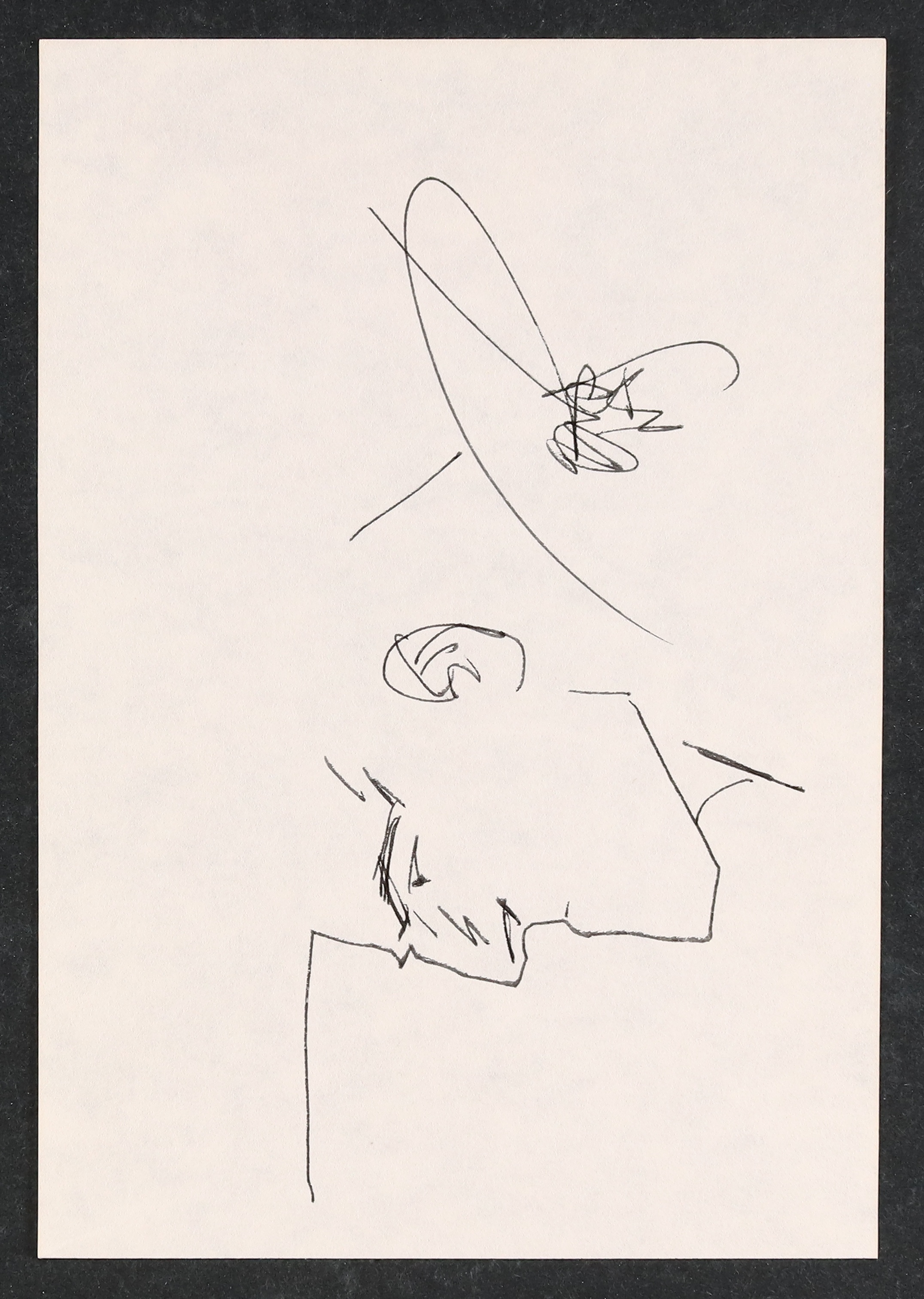 • Signed by the artist. Ink on sketchbook paper. 8 1/4" x 5 3/4".