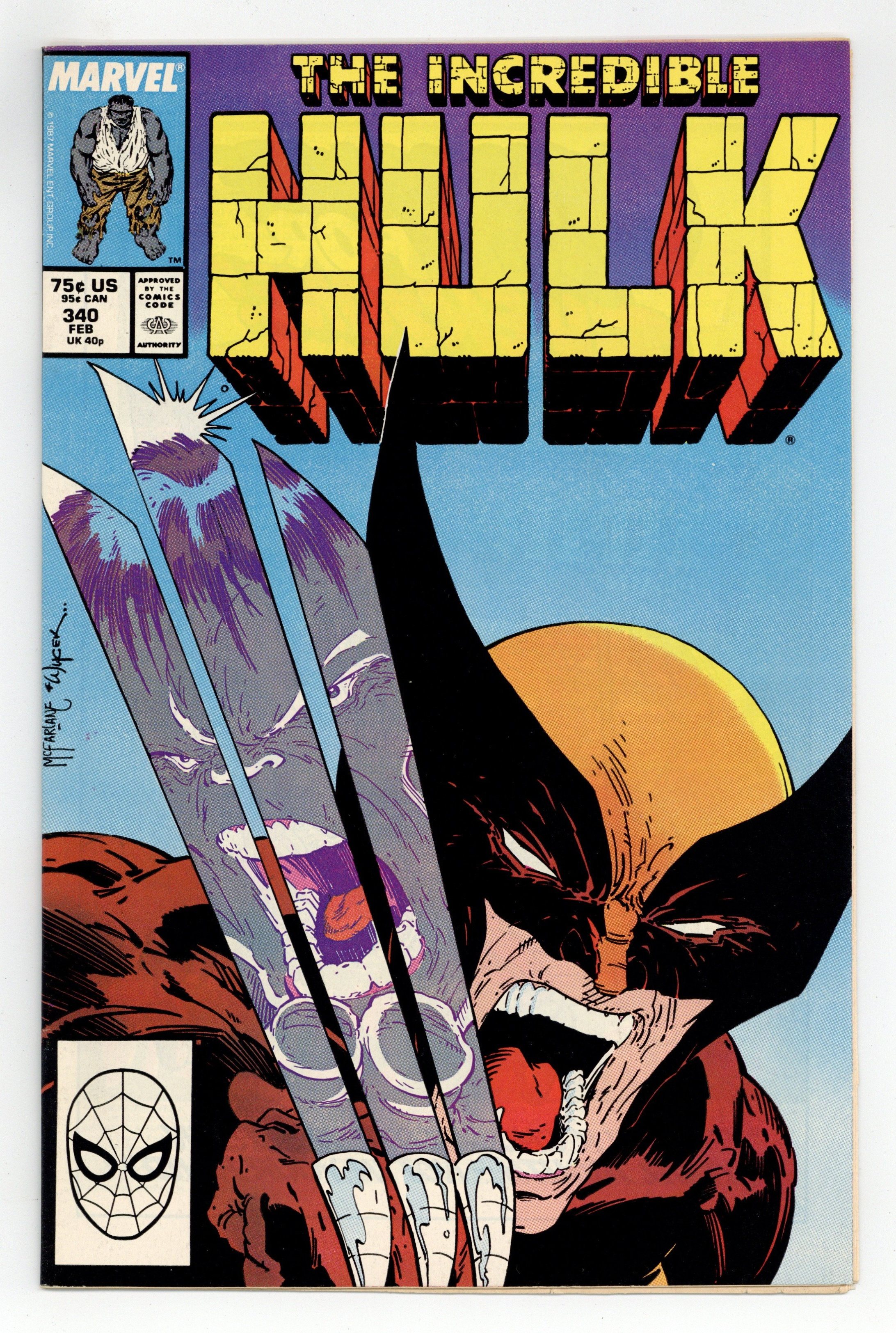 Direct Edition. Fall of the Mutants crossover. "Vicious Circle!" Guest-starring Wolverine. Uncanny X-Men cameo. Story by Peter David. Art by Todd McFarlane. The Canadian mutant and the Incredible Hulk have never had a friendly relationship. This is their second and arguably most vicious battle to date. As the X-Men make their way to their ultimate fate at Forge's tower in Dallas (also see Uncanny X-Men #225-227), Wolverine separates from the group to confront a familiar scent. Before the Canuckle-Head can explain that he's not here for a fight, the Hulk, who hasn't forgotten their last meeting, attacks. 36 pgs. Cover price $0.75. Grade: FN/VF 7.0 explanation of grade Condition: Used (collectible)