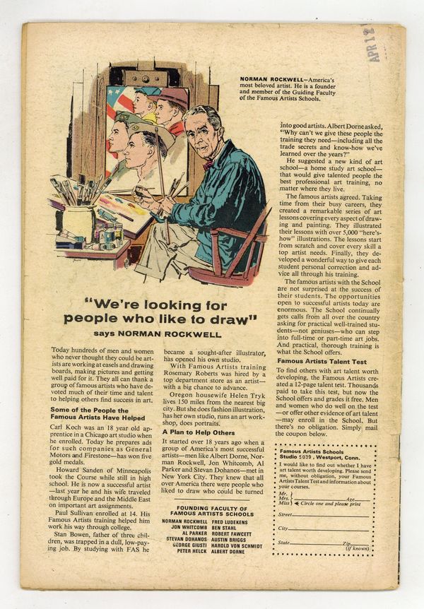 Starts Dec 15 Cover art by Steve Ditko. Second appearance of Mary Jane (cameo; face not shown) in Just a Guy Named Joe!, script by Steve Ditko (Plot) and Stan Lee, art by Steve Ditko; Average joe, Joe Smith, fails at being a fighter and tries his hand at acting; Dressed up as a robotic monster, he is zapped with electricity and chemicals which causes him to go on a violent spree against those who doubted his abilities; Meanwhile, Norman Osborn puts a price on Spidey's head and our hero is plagued with goons trying to bump him off; Pete narrowly misses meeting Mary Jane. This is Ditko's final issue of Spider-Man. Reprinted in Marvel Tales # 177. 36 pgs. $0.12. Cover price $0.12. Grade: GD+ 2.5 explanation of grade Condition: Used (collectible)