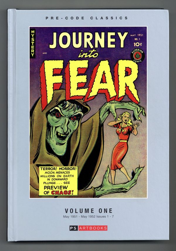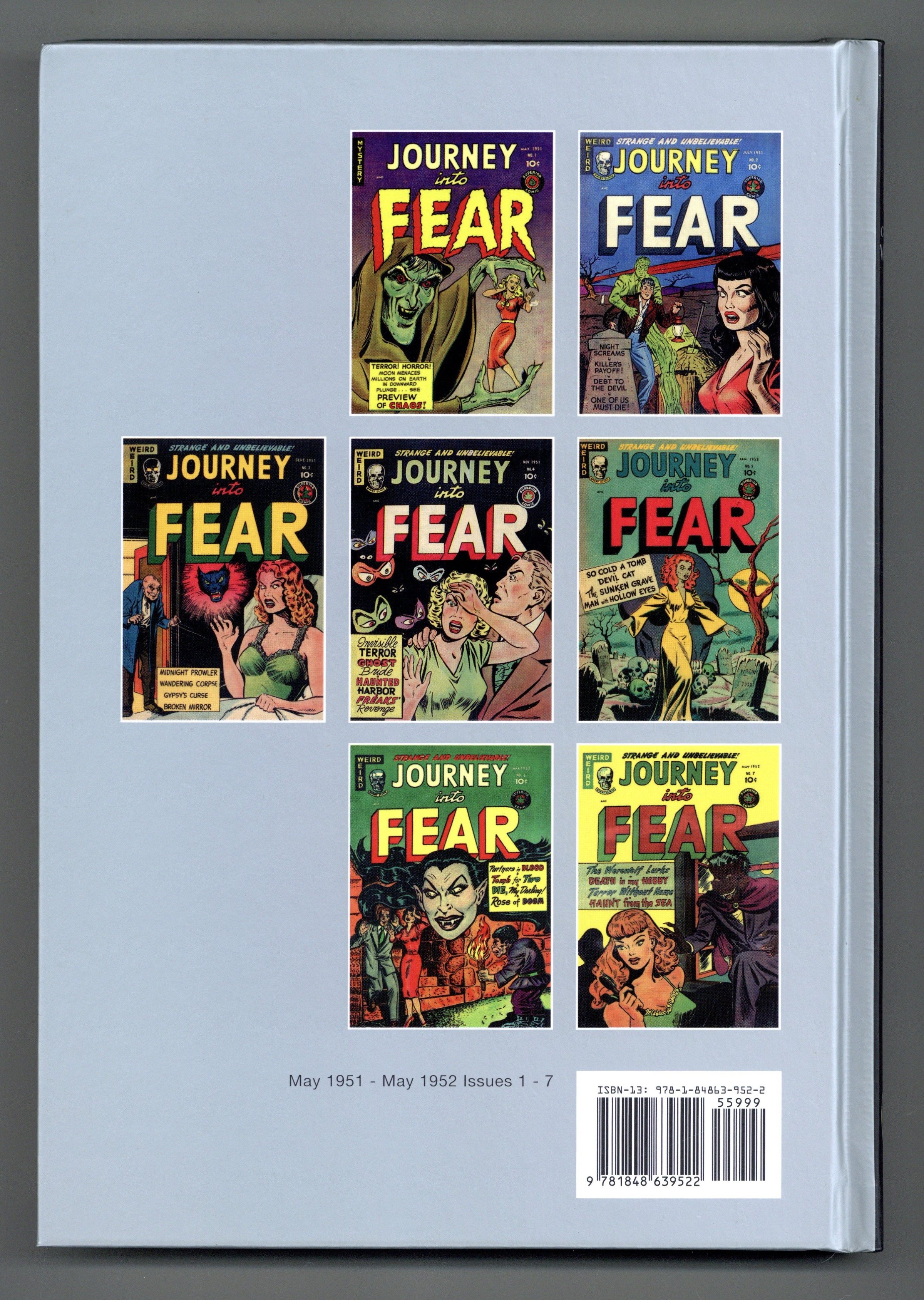 Volume 1 - 1st printing. "May 1951 to May 1952!" Collects Journey into Fear (1951-1954) #1-7. You wanna snapshot of this baby? Check out these two tales. A woman convinces her lover to kill her rich husband. The lover does so by blowing the husband's head off with a gun. After the wife and her lover get married and cash in on the dead man's insurance, the headless corpse of the husband comes back from the dead looking for a new head. And, as if that were not quite enough: Lorna is trained to hate men. She finds a witchcraft book. She begins a crusade of turning men into worms and squishing them. She accidentally squishes the man she loves. She takes poison, as worms come out of the walls to revenge themselves. Hardcover, 252 pages, full color. Cover price $59.99. Grade: VF 8.0 explanation of grade Condition: Used (collectible)