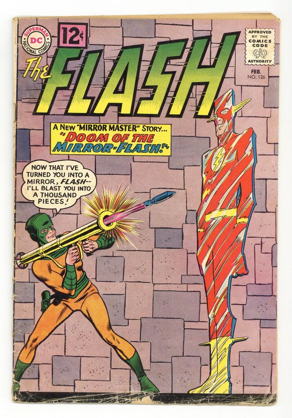 Starts Dec 15 Cover pencils by Carmine Infantino, inks by Murphy Anderson. The Doom of the Mirror Flash!, script by John Broome, pencils by Carmine Infantino, inks by Joe Giella; Mirror Master escapes prison by going to an alternate mirror dimension where the women are obsessed with mirrors. Snare of the Headline Huntress!, script by John Broome, pencils by Carmine Infantino, inks by Joe Giella; while traveling on a train to his home town, Barry encounters his old girlfriend, Daphne Dean, who is now a movie star; Daphne gets kidnapped, and Flash rescues her. A letter from the editors of DC Comics explaining why DC has increased the cover price of its comics from 10c to 12c; Among other things, the letter mentions that the cover price of a comic hadn't increased in 25 years; What isn't mentioned is that comics were originally 64-pages, but over the years the standard size shrank to 32-pages. Letter from comics reviewer and fanzine publisher Donald Thompson (better known as Don). Superman Annual ad. Giant Batman Annual #2 ad. 36 Pages, Full Color. Cover price $0.12. Grade: GD 2.0 explanation of grade Condition: Used (collectible)