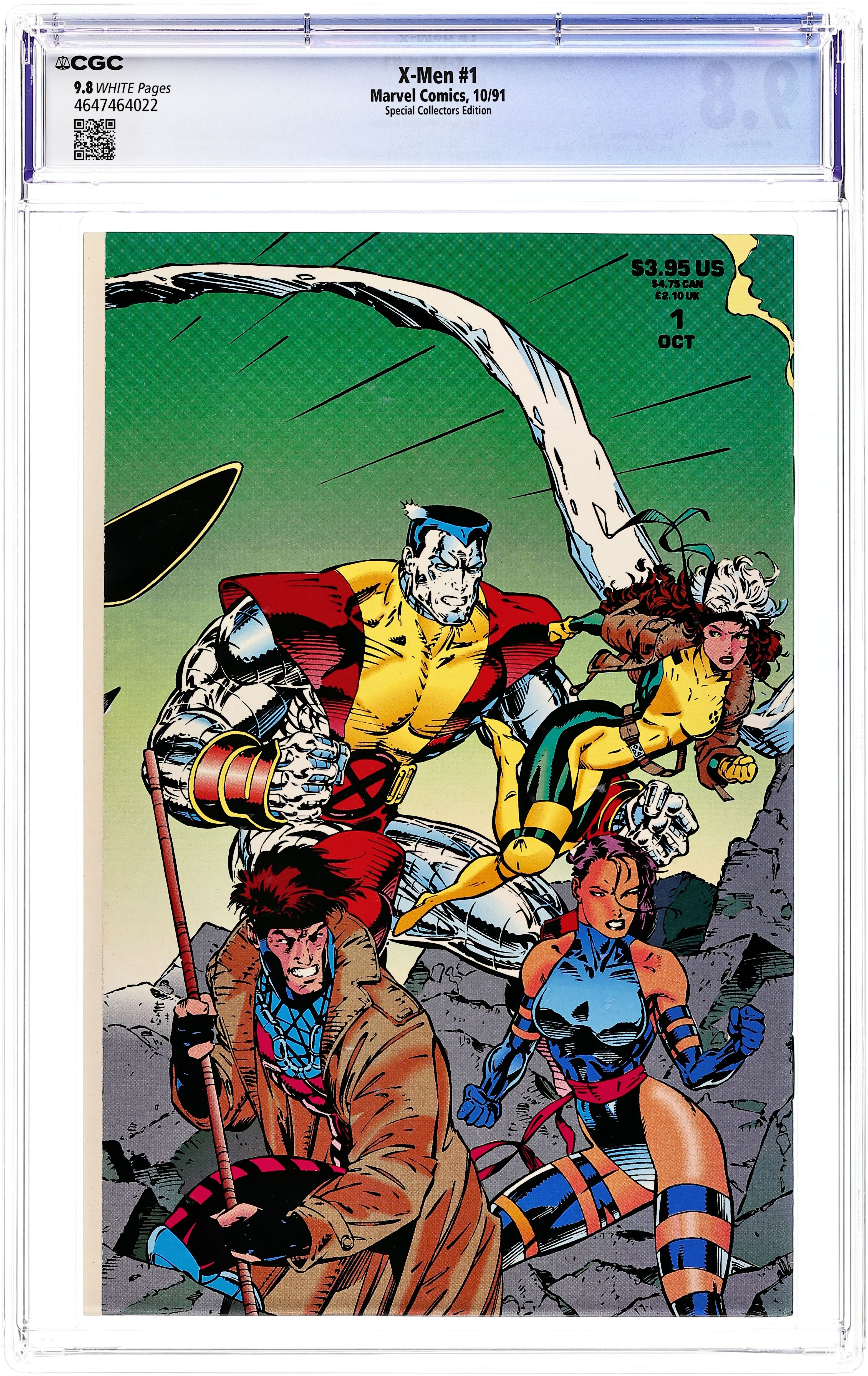 Fold-out cover. Magneto guest stars in "Rubicon." Script by Jim Lee (co-plot) and Chris Claremont, pencils by Jim Lee, inks by Scott Williams. Nick Fury cameo. 2-page pin-up: gallery of X-Men villains. Lee/Williams cover. Cover price $3.95. Grade: CGC 9.8 explanation of grade Condition: Used (collectible)