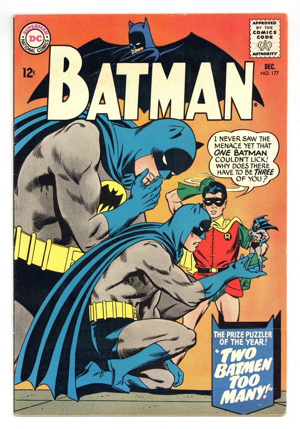 Cover pencils by Carmine Infantino, inks by Murphy Anderson. Builders of the Future! public service announcement about the importance of UNESCO funding in building schools in Africa, art by Sheldon Moldoff. "Two Batmen Too Many!", script by Bill Finger, pencils by Sheldon Moldoff (as Bob Kane), inks by Joe Giella; Batman concocts a scheme against numbers racketeer Ed Garvey to prove conclusively that the crook planned and carried out the Kimber Gem job. One-page Cap's Hobby Center activity page by Henry Boltinoff. "The Art Gallery of Rogues!", script by John Broome, pencils by Sheldon Moldoff (as Bob Kane), inks by Sid Greene; Batman deduces that a man named Lathrop has stolen some artwork from a gallery and passed it off to one of his henchmen in order to get a grant from the Alfred Foundation. Rocky and Bullwinkle star in a one-page Cheerios ad. 36 Pages, Full Color. Cover price $0.12. Grade: VG+ 4.5 explanation of grade Condition: Used (collectible)