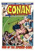Cover art by Barry Windsor-Smith. Web of the Spider-God, plot by John Jakes, script by Roy Thomas, pencils by Barry Windsor-Smith, inks by Sal Buscema; setting: desert east of Ophir & city of Yezud; Conan is delirous in desert, Thanix saves his life; Conan fights Omm (giant spider), Tork destroys Yezud and leaves for Shadizar with Lea. 36 pgs. Cover price: $0.20. Cover price $0.20. Grade: FN 6.0 explanation of grade Condition: Used (collectible)