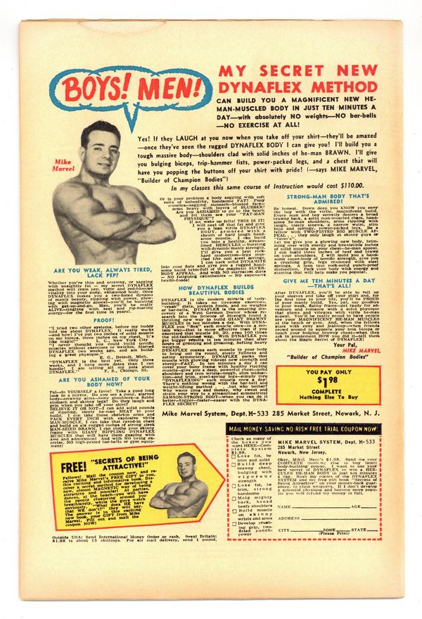 Cover pencils by Bob Powell, inks by Wally Wood. The Organizer returns with Ape Man, Bird Man, Cat Man, and Frog Man in A Time To Unmask!, script by Stan Lee, pencils by Bob Powell, inks by Wally Wood; The case of the Organizer and the Reform Party is wrapped up as mysteries are all solved; Matt takes a leave of absence from the law firm. 36 pgs. Cover price $0.12. Cover price $0.12. Grade: VG+ 4.5 explanation of grade Condition: Used (collectible)