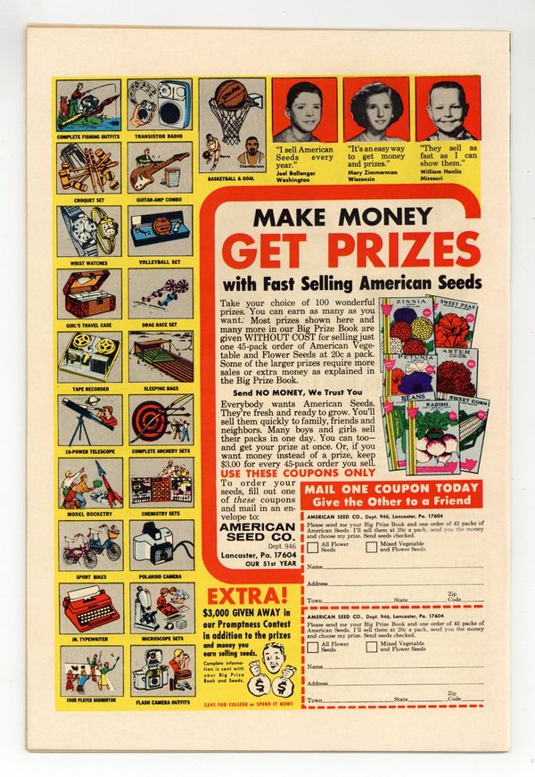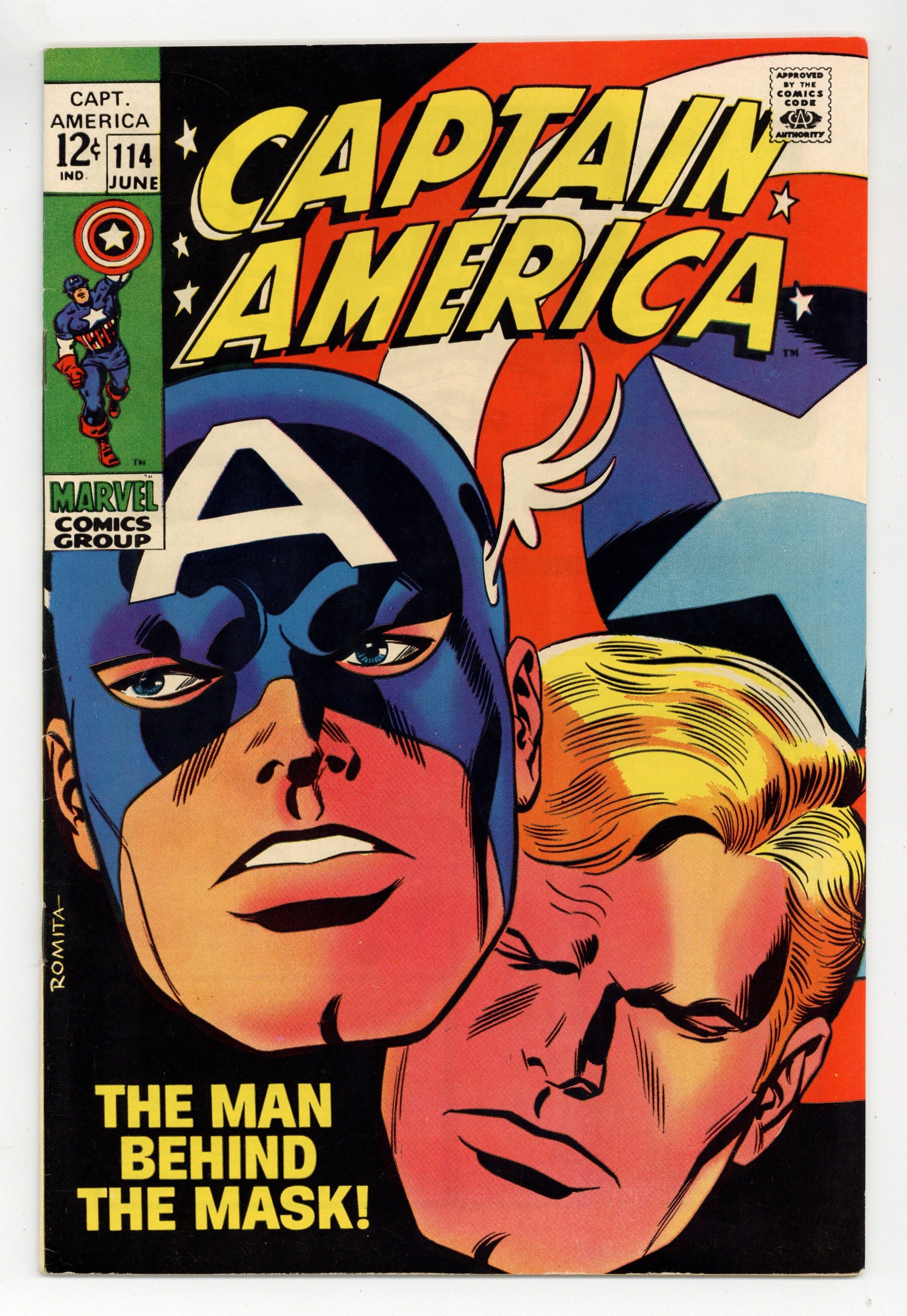 Cover by John Romita. The Avengers have a cameo in "The Man Behind the Mask!", script by Stan Lee, pencils by John Romita and Sal Buscema, inks by Sal Buscema; After convincing the American public that Steve Rogers was a fake identity, Captain American walks around in Manhattan, contemplating on what to do with his life; He realizes he is more Cap than Steve, and decides make a more normal life for himself instead of being an Avenger; Even so, Captain America and Rick Jones rescue Sharon Carter; The Red Skull shows Captain America that he has recovered the Cosmic Cube. 36 pgs., full color. $0.12. Cover price $0.12. Grade: VF- 7.5 explanation of grade Condition: Used (collectible)