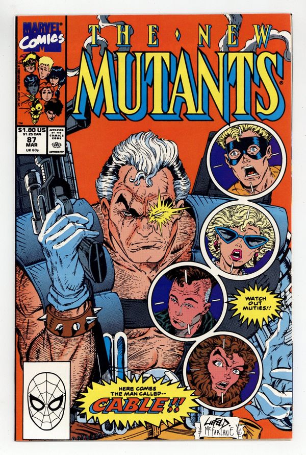 First printing. Direct Edition. 1st full appearance of Cable. Liefeld art. Liefeld/McFarlane. Cover pencils by Rob Liefeld, inks by Todd McFarlane. A Show of Power!, script by Louise Simonson, pencils by Rob Liefeld, inks by Bob Wiacek; The Mutant Liberation Front attacks more research stations; Mystique threatens Skids; a federal agent shoots Rusty; he and Skids allow the MLF to rescue them; the New Mutants return to New York; after trying to stop the MLF, Cable weighs his options. Part 2 of 4. 36 pages, full color. Cover price $1.00. Grade: FN+ 6.5 explanation of grade Condition: Used (collectible)