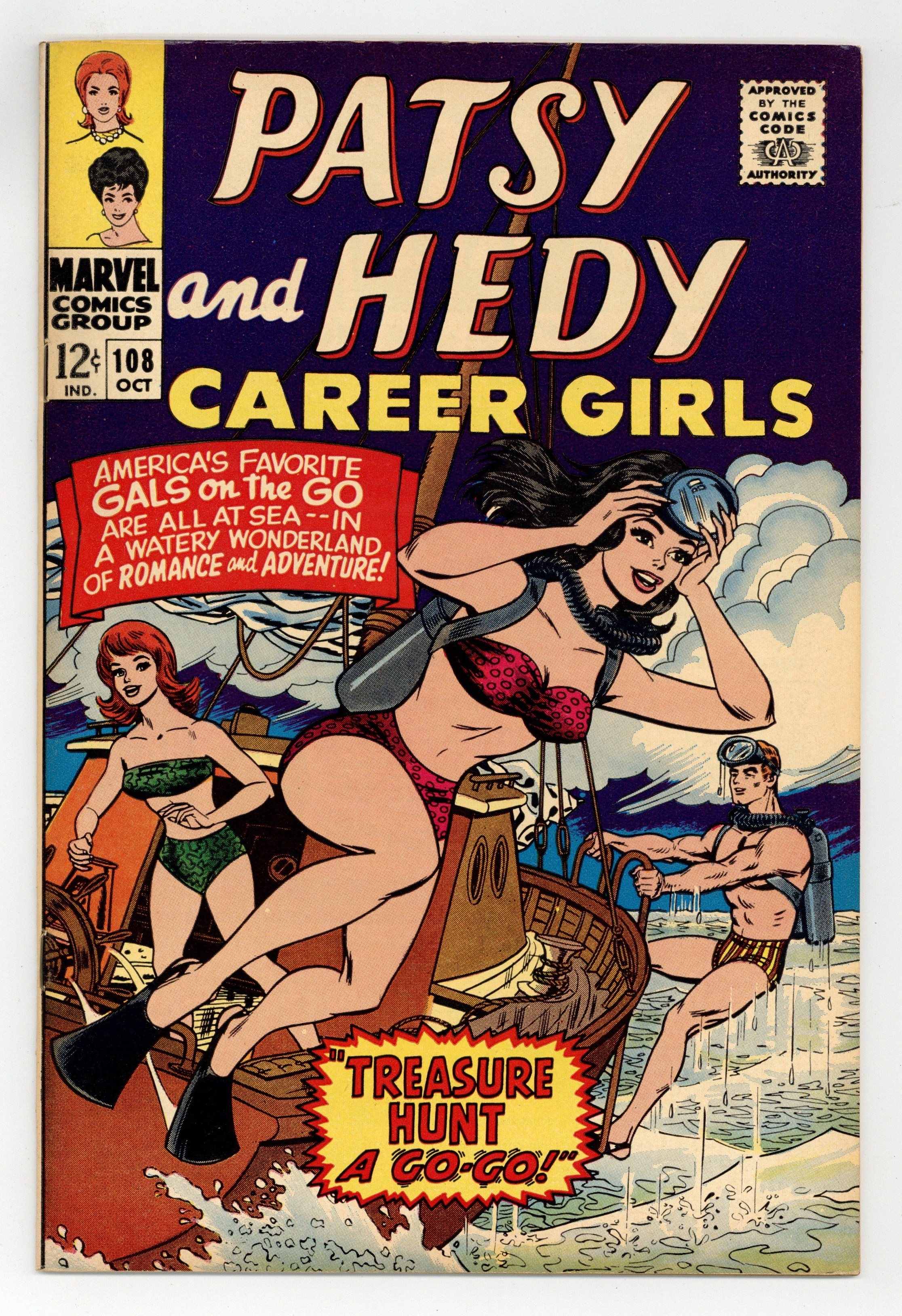 Cover pencils by Al Hartley. Treasure Hunt a Go-Go!, script by Denny O'Neil (as "Denny-O"), fantastic pencils by Hartley. Patsy and Hedy's Beautiful Blouses fashion page. Wow, What Hairdos fashion page. Paper dolls. Cover price $0.12. Grade: VG/FN 5.0 explanation of grade Condition: Used (collectible)