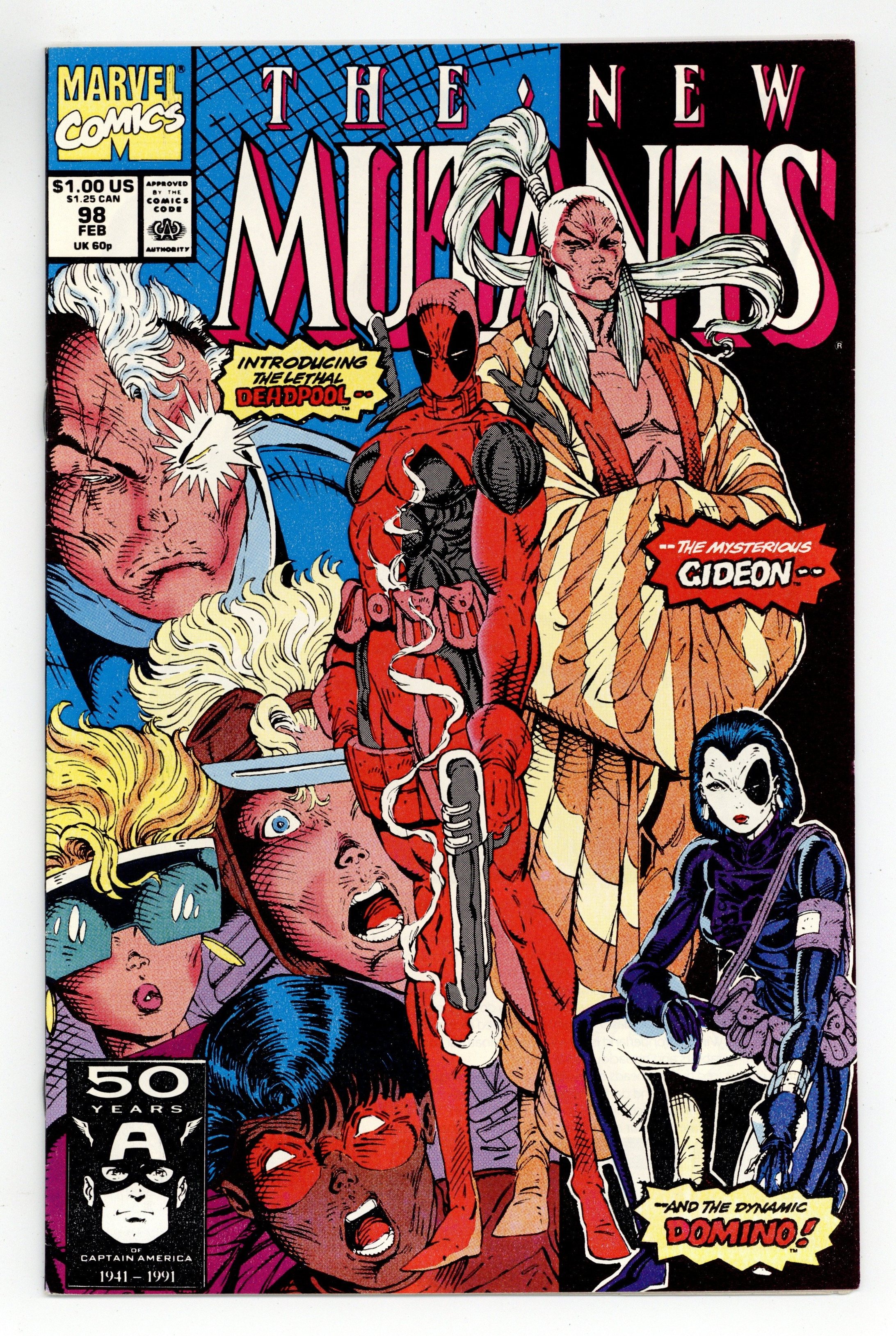 1st appearance of Deadpool, Gideon, and Domino (Impersonated by Copycat). Cover pencils by Rob Liefeld. The Beginning of the End, Part One, script by Rob Liefeld (plot) and Fabian Nicieza (script), art by Rob Liefeld; Gideon arranges for the murder of Sunspot's father; Deadpool, working for Mr. Tolliver, attacks Cable; Domino defeats him; Cable and Domino plot strategy; Rictor decides to go after Wolfsbane, who stayed in Genosha; Gideon tells Sunspot his father is dead. Part 1 of 3. 36 pgs. The Domino that appears in this issue is actually the mutant known as Copycat. The real Domino makes her first real appearance in he pages of X-Force (1991-2002 1st Series) #8 and 11. Cover price $1.00. Grade: VF 8.0 explanation of grade Condition: Used (collectible)