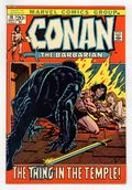 Starts Dec 8 Cover pencils by Gil Kane, inks by John Romita. The Thing in the Temple, script by Roy Thomas, pencils by Gil Kane, inks by Dan Adkins; setting: Island city of Bal-Sagoth in Vilayet Sea; Conan & Fafnir slay demons and flee from Bal-Sagoth as a volcano destroys the island; They are picked up in the Sea by Yezdigerd; adapted from the non-Conan story, The Gods of Bal-Sagoth by Robert E. Howard; Fafnir appearance. Letter to the editor from Ted White (editor of Amazing, Fantastic). Kane cover pencils, John Romita Sr. cover inks. 36 pgs. Cover price $0.20. Cover price $0.20. Grade: FN- 5.5 explanation of grade Condition: Used (collectible)