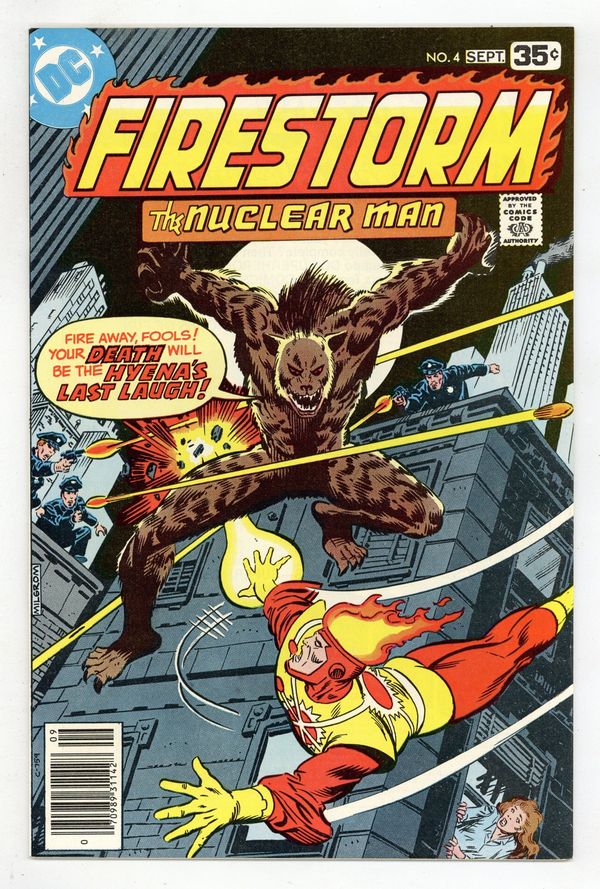 Starts Dec 15 Firestorm battles Hyena, a vigilante of sorts who goes after both criminals and lawmen. Script by Gerry Conway, pencils by Al Milgrom, inks by Jack Abel. Cover by Milgrom. Cover price $0.35. Grade: VF- 7.5 explanation of grade Condition: Used (collectible)