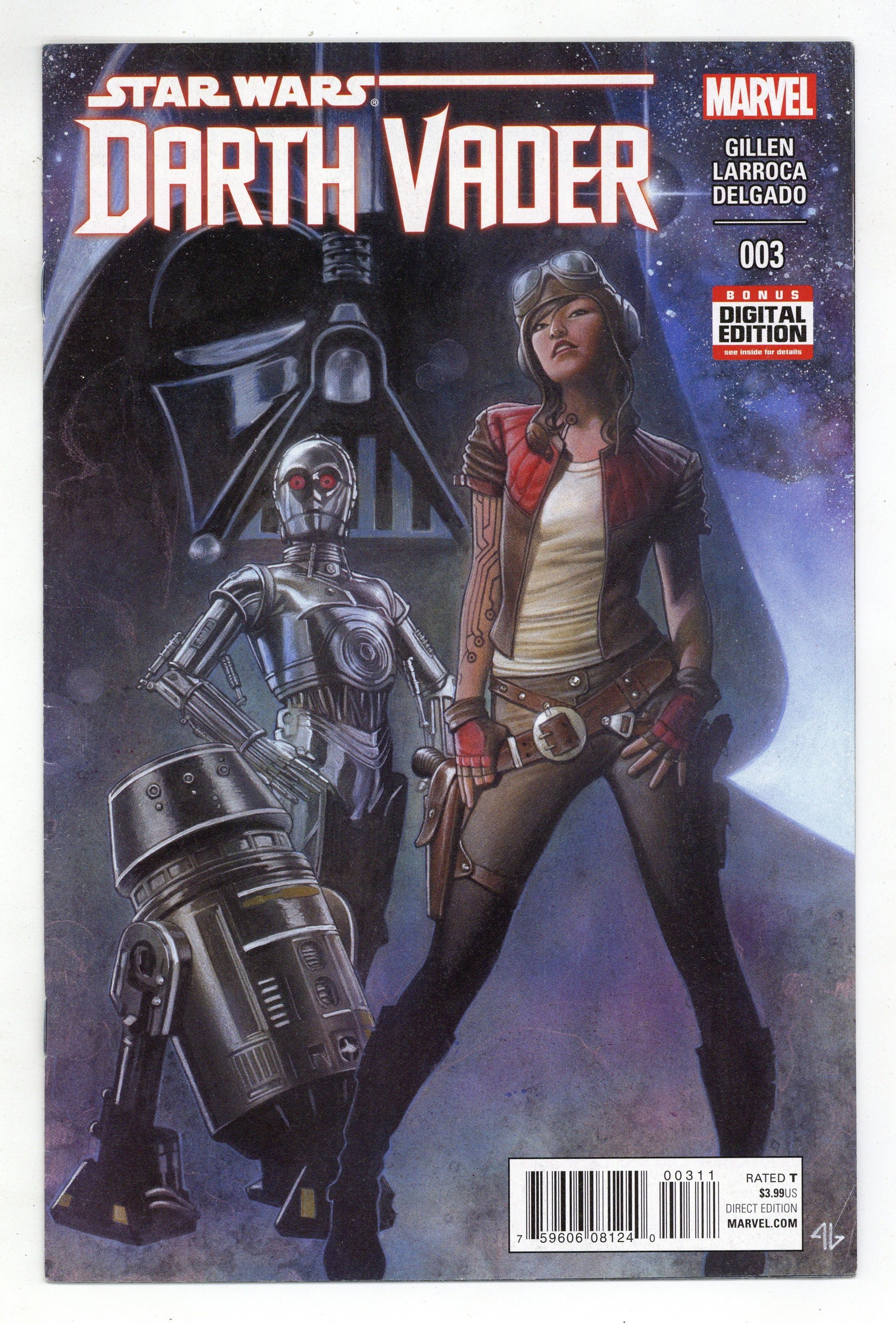 Written by Kieron Gillen. Art by Salvador Larroca. Cover by Adi Granov. When a Dark Lord needs help, who can he turn to? Meet Aphra-the galaxy's foremost raider of lost weaponry! Plus: could these be the deadly droids she's looking for? 28 pages, full color. Rated T Cover price $3.99. Grade: VG+ 4.5 explanation of grade Condition: Used (collectible)