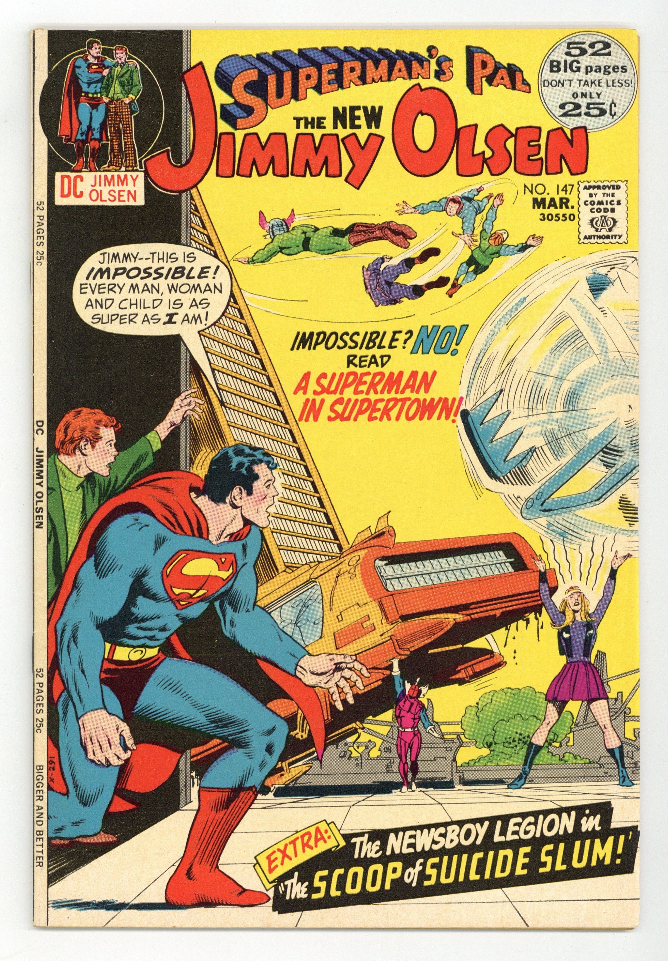 Cover pencils by Neal Adams, inks by Murphy Anderson. A Superman in Super-Town!, script and pencils by Jack Kirby, inks by Mike Royer; Superman visits New Genesis and meets Magnar and Highfather; he returns to Earth to help Jimmy and the Newsboy Legion, who are prisoners of evil Victor Volcanium. The Scoop of Suicide Slum starring the Newsboy Legion, script by Jack Kirby; Joe Simon, pencils by Jack Kirby, inks by Joe Simon. Letter to the editor from comics writer Bob Rozakis. Statement of ownership--average print run 555,000; average paid circulation 299,882. 52 Pages, Full Color. Cover price $0.25. Grade: FN+ 6.5 explanation of grade Condition: Used (collectible)