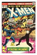 "My Brother, My Enemy!" Story by Chris Claremont. Art by Dave Cockrum and Sam Grainger. Cyclops and the all new X-Men suddenly find themselves facing off with former allies Havok and Polaris. Who is the mysterious villain that plots and schemes from the shadows? Who is this man that pits brother against brother? Plus, what do Charles Xavier's recurring prophetic nightmares mean for the future of his students? NOTE: 1st appearance of Lilandra (face & name unrevealed). Her face is seen for the 1st time in #102 and her name is revealed in #105 36 pgs. Cover price $0.25. Grade: VG/FN 5.0 explanation of grade Condition: Used (collectible)
