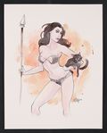 This shape shifting warrior and ally of Travis Morgan, the Warlord, is depicted beautifully here in striking watercolor. Pencil, colored pencil, and watercolor on heavy stock. Signed by the artist. 11" X 14".
