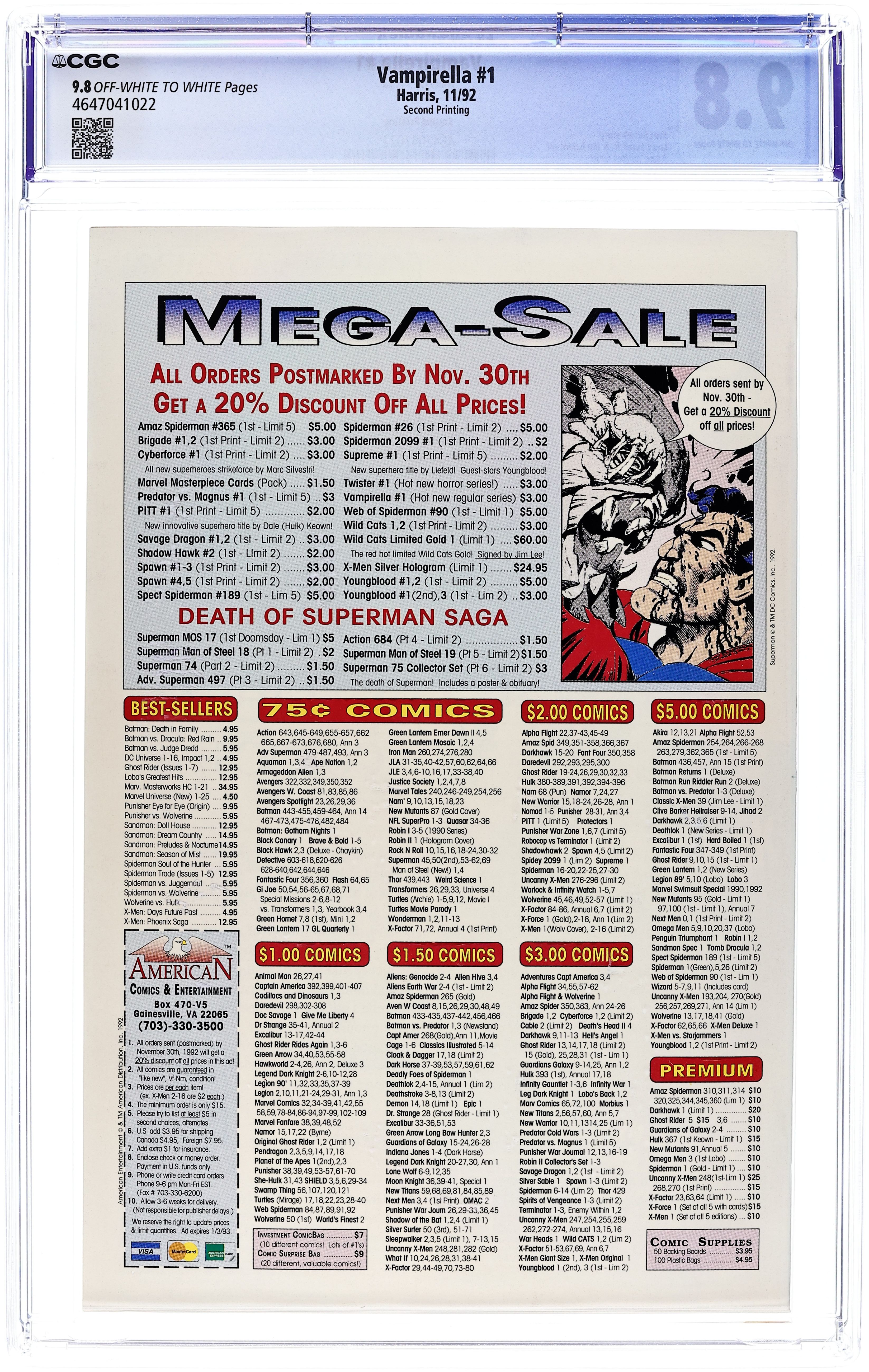 Vampirella (1992 Harris 1st Series) 1REP.2ND CGC 9.8