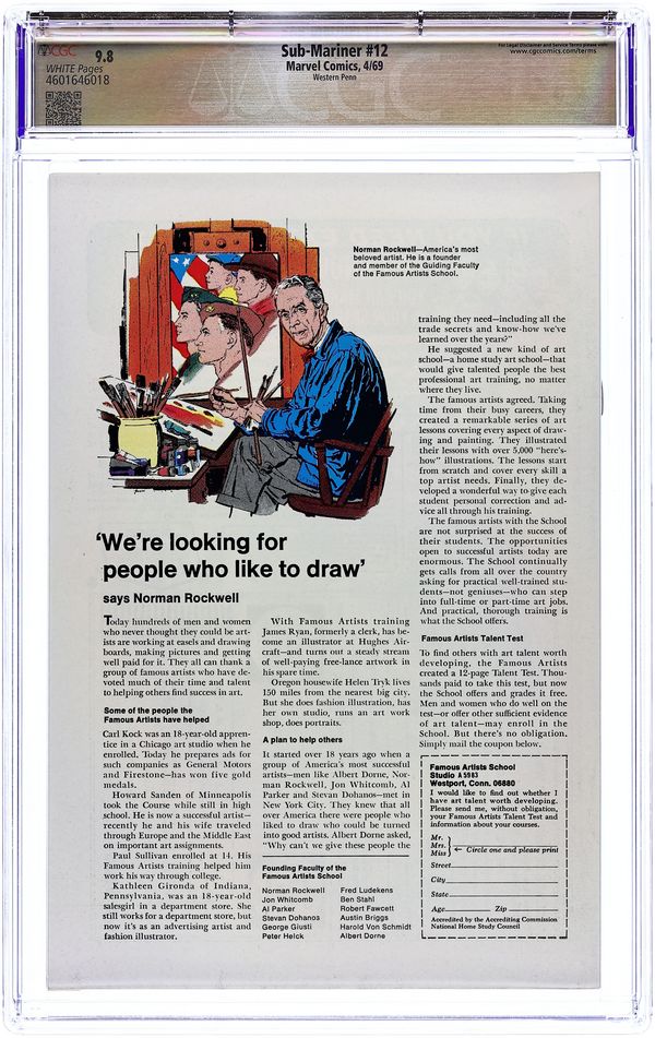 Sub-Mariner (1968 1st Series) 12 CGC 9.8 Western Penn