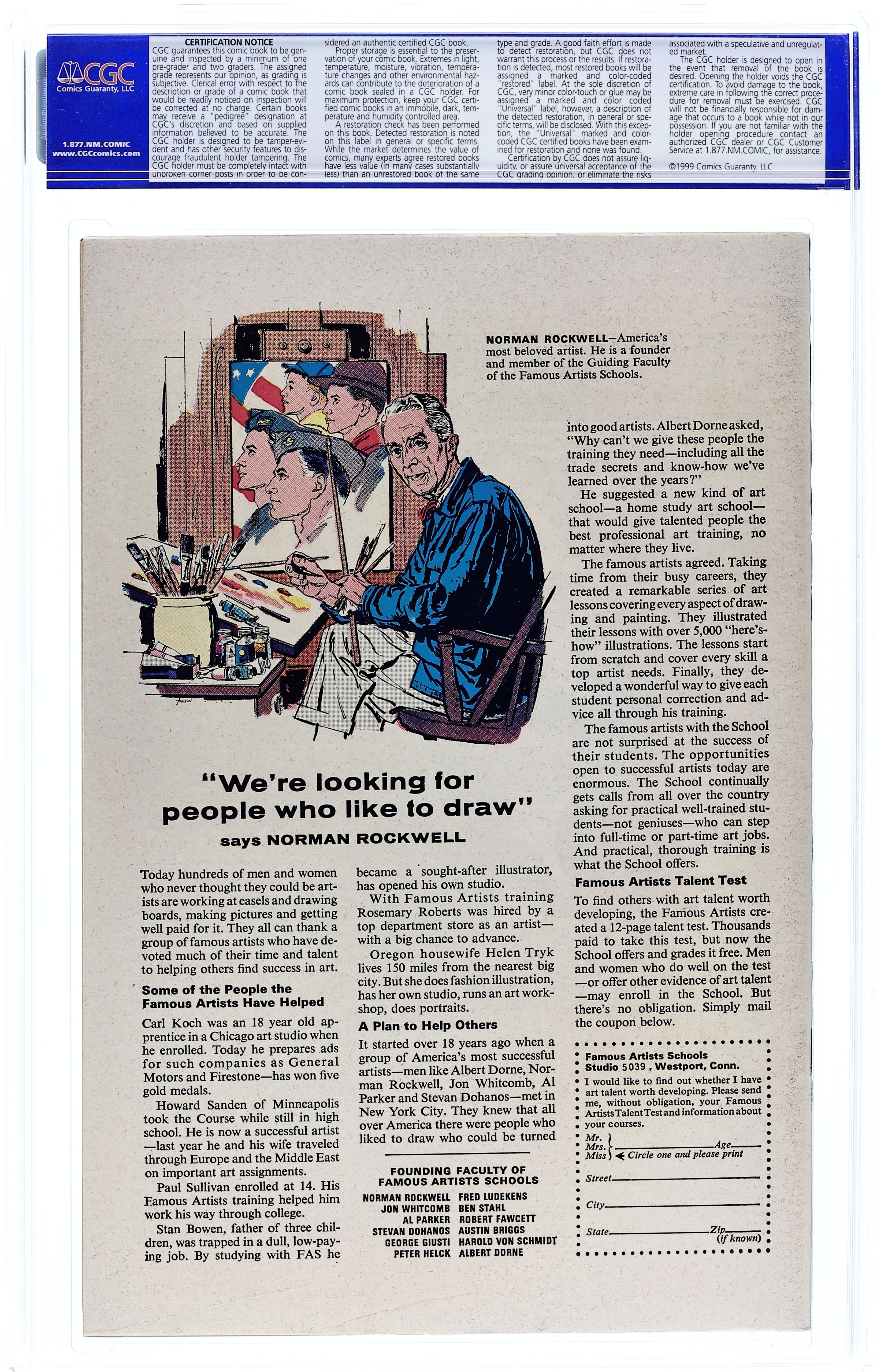 Cover art by John Romita. How Green Was My Goblin!, script by Stan Lee, pencils by John Romita (who begins as regular penciler), inks by Mike Esposito [as Mickey Demeo] and John Romita (touch-ups); Peter heads to the doctor with the sniffles and learns that Aunt May's health is very fragile; Spidey is roped into tangling with a bunch of goons who zap him with a mysterious gas; Not realizing that the gas has weakened his spider sense, he changes into Peter Parker under the watchful gaze of the Green Goblin; The Goblin confronts Spidey outside of his home and captures him as Peter is worried that Aunt May might be overcome by the commotion; Trussed up in the Goblin's lair, Peter is shocked when the Goblin takes off his mask and reveals himself to be Norman Osborn. Reprinted in Marvel Tales # 178. According to Les Daniels in "Marvel: Five Fabulous Decades of the World's Greatest Comics" (Abrams, 1991), artist Steve Ditko resigned because of a disagreement over the Goblin's identity. Ditko wanted it to be someone anonymous--a new, unknown guy; Lee wanted it to be a familiar character that would startle readers. 36 pgs. $0.12. Cover price $0.12. Grade: CGC 9.2 explanation of grade Condition: Used (collectible)