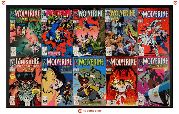 Issues 2, 4, 5, 7, and 11-15 of Wolverine (1988 1st Series); and 6 of Punisher War Journal (1988 1st Series). Most will grade in the VF range with a couple grading FN+.