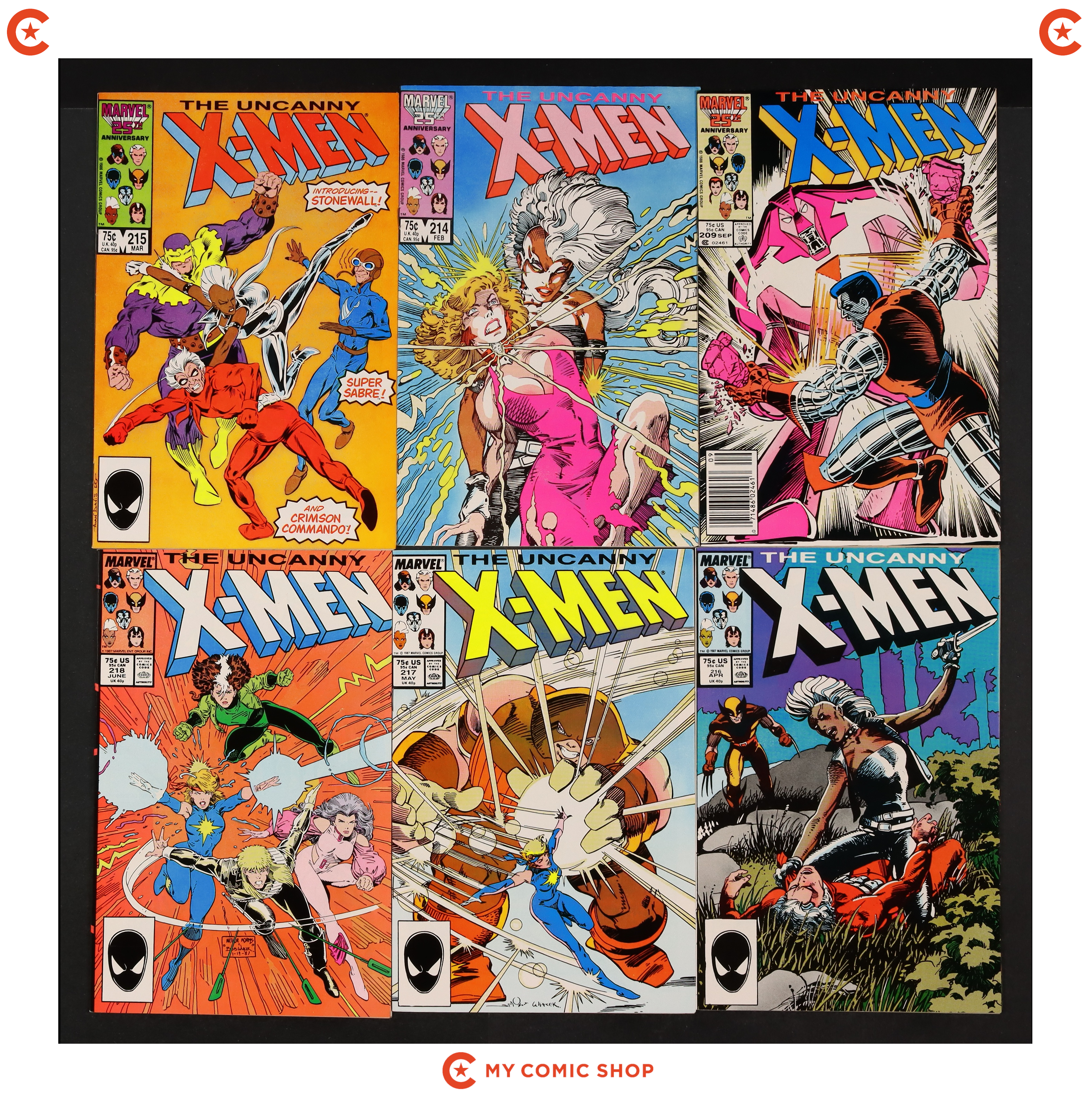 Issues 209N, 214-218, 219N, 220, and 223 of Uncanny X-Men (1963 1st Series); 8 and 9 of Uncanny X-Men (1963 1st Series) Annual; and 1 of X-Factor (1986 1st Series Marvel). Most will grade in the VF to FN+ range.