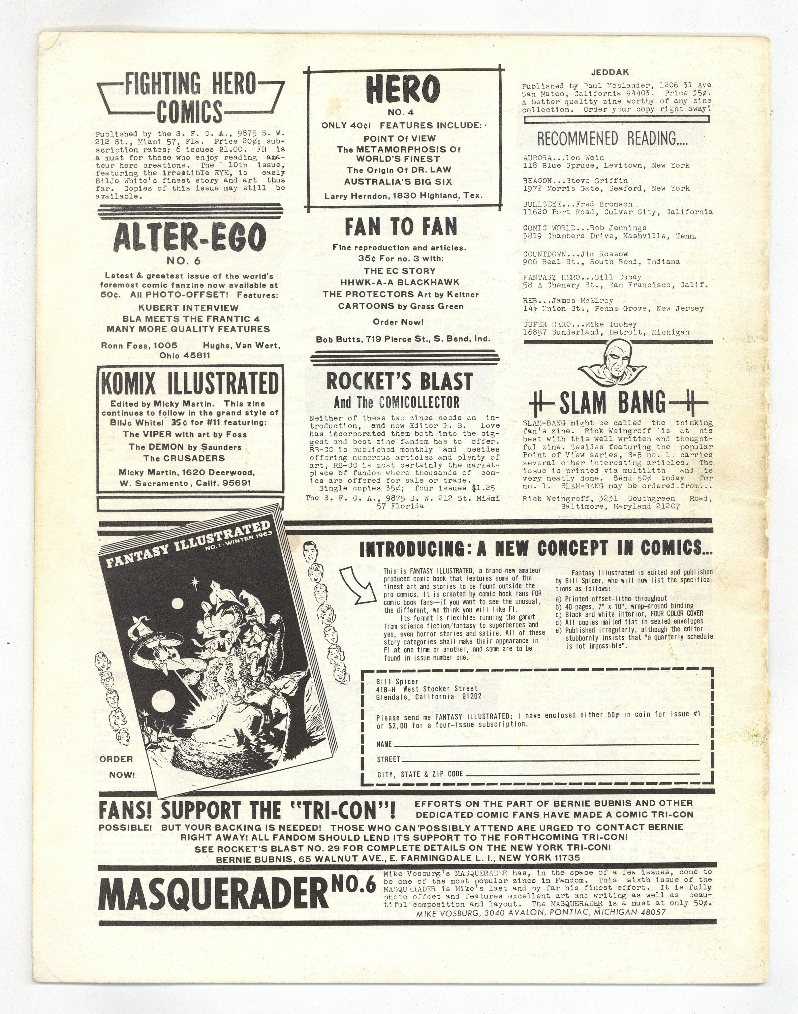 Star-Studded Comics 4 - June 1964 published by the Texas Trio. Issue number 4 appeared in two different formats; please see individual items notes to see which printing is listed. First printings have staples on the sides of the pages. On second printings, the cover is a wraparound format with the staples in the center of the pages. Also in first printings, in Chapter 1 - "A Gathering of Heroes!" pages 2 of 3 were mistakenly switched. Second printings of this issue correct that mistake. Format: Photo offset printing Staple bounded on sides of pages Original price was 50 cents. First price increase for comic. The first three issues cost 35 cents. Color cover by Don Fowler (AKA Buddy Saunders) features the Liberty Legion - Doctor Weird, Astralman, Changling, Defender, Mercury, and Powerman "Let's Talk It Over!" column notes that circulation of this issue was 300 copies and has letters from Dave Bibby, Al Russell, Robert E. Kennedy, Hugh Surratt, Mark Clemens, and Jerry Phillips. Issue has full page advertisements of other fan publications and magazines. Issue #4 of Star-Studded Comics is the only issue to feature a book-length team-up saga of "The Liberty Legion" -- Doctor Weird, Astral Man, Changling, Defender, Mercury, and Powerman. The story by Larry Herndon and Buddy Saunders is divided into five chapters: Chapter 1 - "A Gathering of Heroes!" Art by Ron Foss (Pages 2 of 3 of Chapter 1 were accidently switched. Second printings of this issue corrects that mistake.) Chapter 2 - "Doom of the Deadly Deluge!" Art by Don Fowler Chapter 3 - "Menace of the Solar Lance!" Art by Richard "Grass" Green. Note "Office of Texas Trio" on splash page with collector fleeing with his comics! Chapter 4 - "Threat of the Molten Metal!" Art by Biljo White Chapter 5 - "The Showdown!" Art by Howard Keltner Cover price $0.50. Grade: VG 4.0 explanation of grade Condition: Used (collectible)