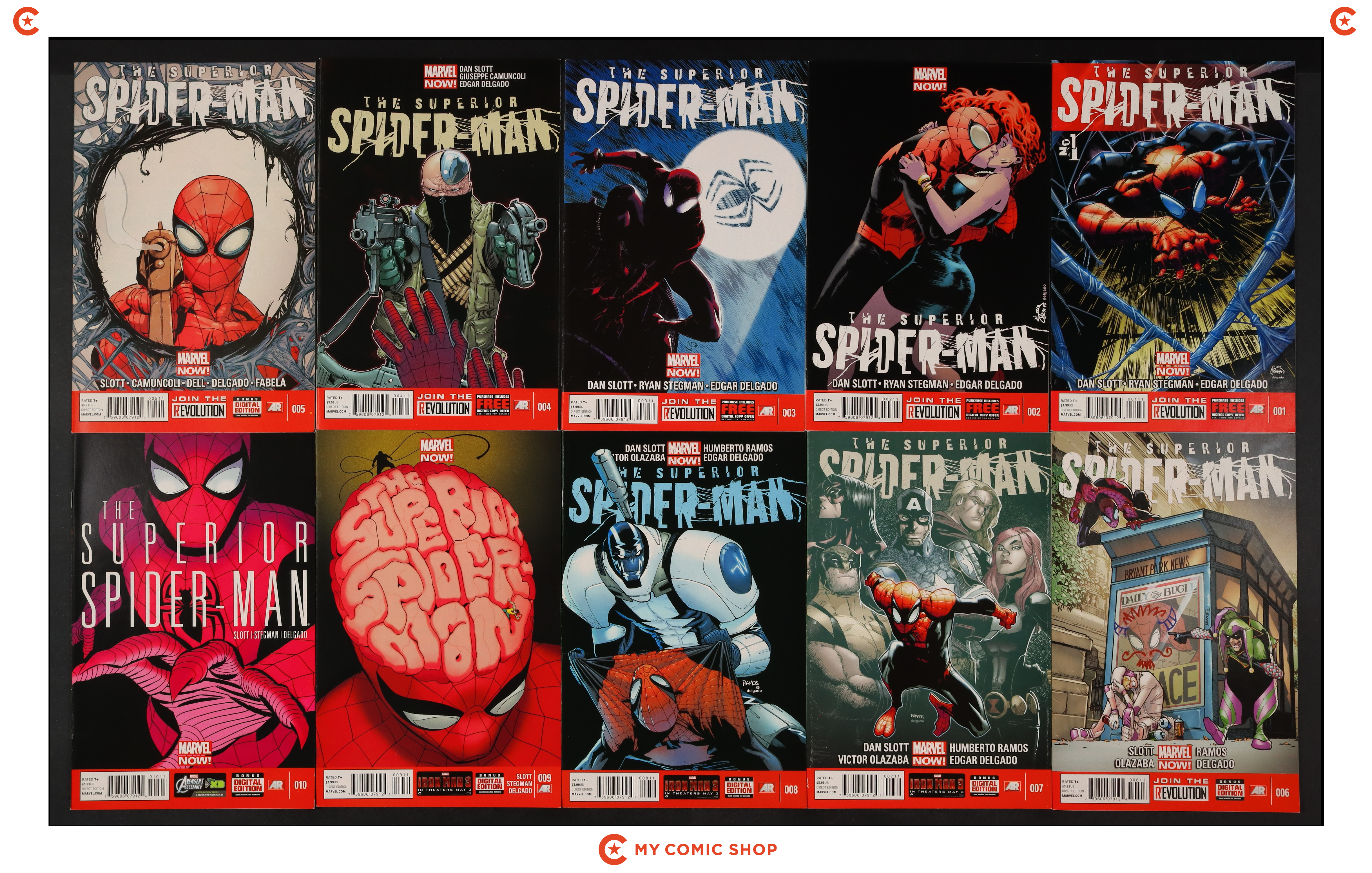 Issues 1A, 2A, 3A, 4A, 5A, 6A, 7A, 8A, 9A, and 10A of Superior Spider-Man (2013 Marvel NOW). Most will grade in the VF to NM range with #9A grading FN.