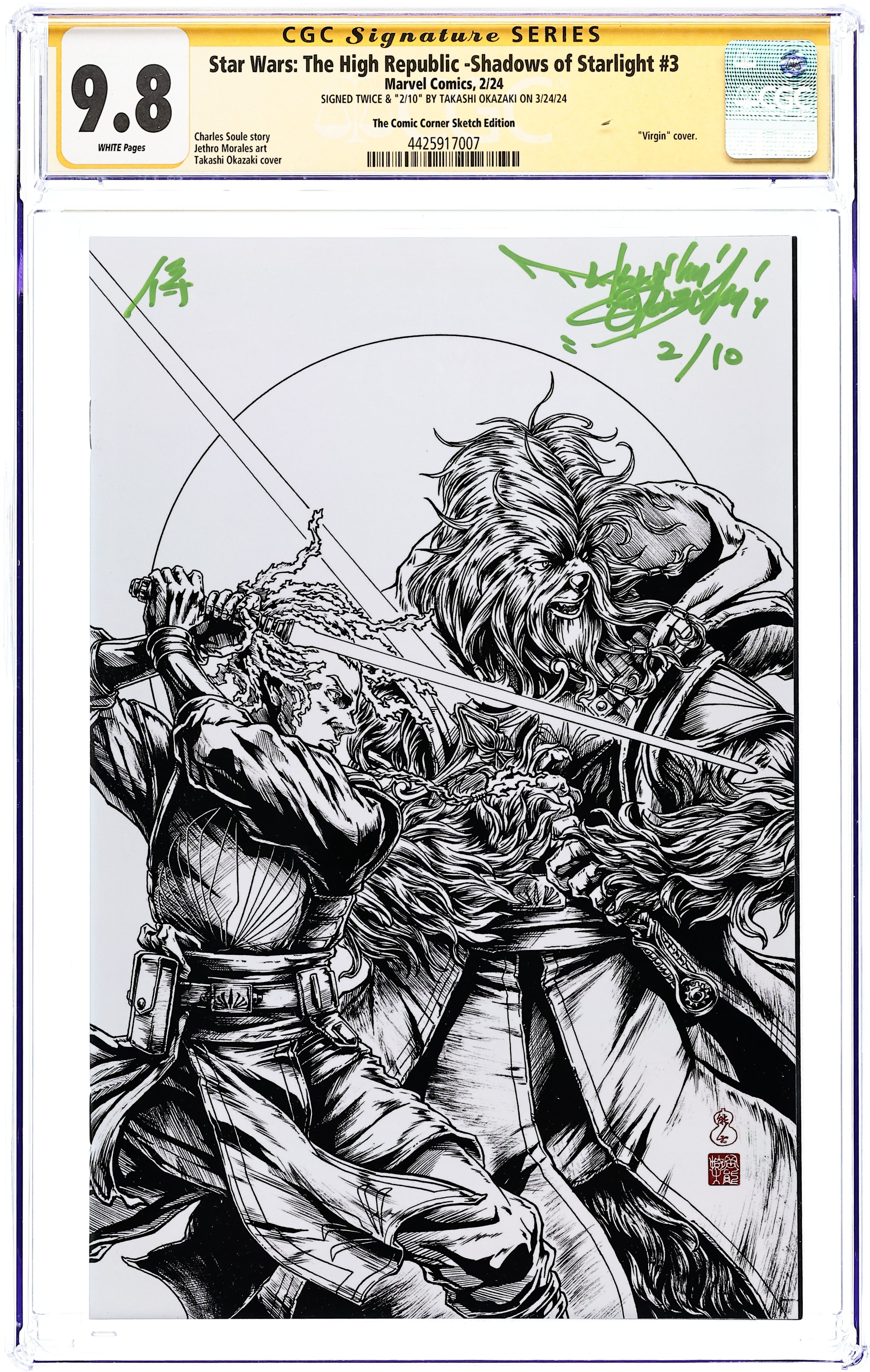 Star Wars the High Republic Shadows of Starlight (2023 Marvel) 3CORNER.C CGC 9.8 SS Okazaki