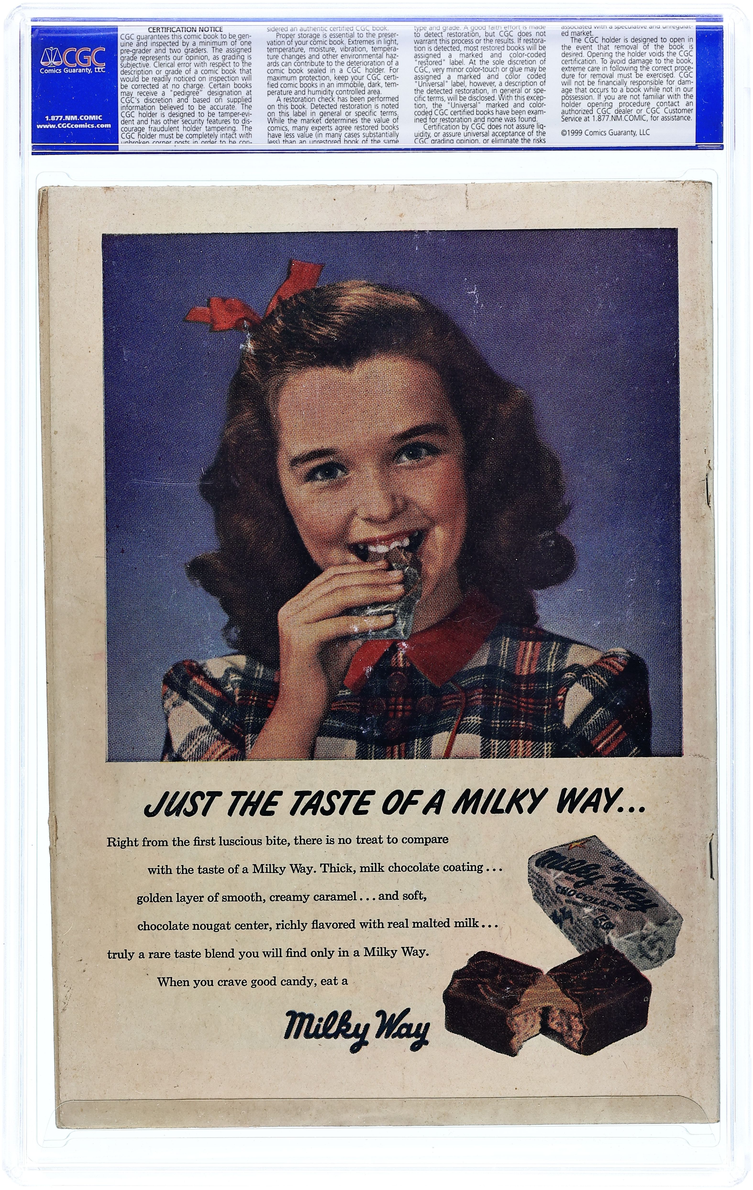 Cover by Dick Sprang. Stories by unknown. Art by Dick Sprang, Howard Sherman, Lee Harris and unknown. At a meeting of the Gotham City Museum Board of Trustees, Bruce Wayne sees a map from 1667 that bears his hand-writing, so he has Professor Nichols send him and Dick back to that era to see if they can solve that age old mystery. Don't miss Batman and Robin in "The Dead Man's Chest!" with art by Dick Sprang. Plus: Slam Bradley in "Truth + Penalty = Crime-Catchers!" with art by Howard Sherman; Air Wave in "The City of Glass!" with art by Lee Harris; and The Boy Commandos in "A Tale of Two Brooklyns!" Also: 1.5-page text story "Too Many Cooks!" by Cliff Rhodes. 52 pages, full color. Cover price $0.10. Grade: CGC 7.5 explanation of grade Condition: Used (collectible)