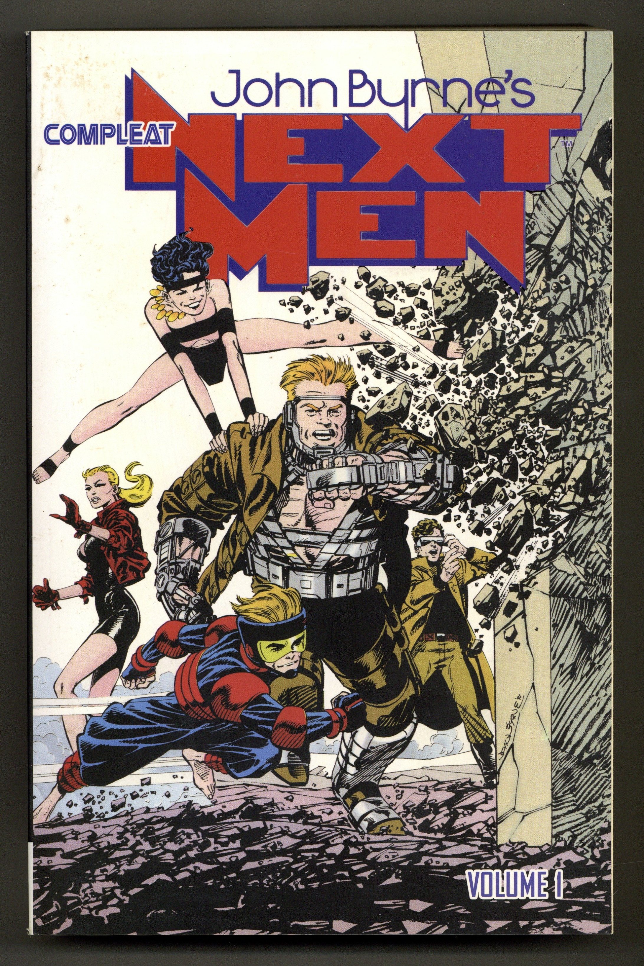 Volume 1 - 1st printing. Collects John Byrne's 2112 GN (1991) and Next Men (1992-1994 John Byrne's) #0-12. Story and art by John Byrne. In the 1990s, acclaimed writer/artist John Byrne created an all-new world of superheroes and explored their impact on the planet in a realistic way, a book that quickly became one of the most critically acclaimed titles in his storied career. Now John Byrne's Next Men is being collected in its entirety in thick B&W volumes that offer 300 pages of story and art. Volume 1 collects the 2112 graphic novel, the #0 issue, and the first 12 issues of this masterful run. Softcover, 436 pages, B&W. Mature Readers Cover price $19.99. Grade: FN+ 6.5 explanation of grade Condition: Used (collectible)