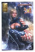 Boo Koo Comix Exclusive "After the Storm" Edition Variant Cover by Kyu Yong Eom - Limited to 100 copies. Erin was an ordinary college student until one day she stumbled upon the mysterious woman named...Athena! When a War Wraith attacks, Athena uses her power to combine Erin and herself unleashing Patriotika! Now Erin must learn how to use her powers and the deal with the enemies of Athena... This comic contains super hero action and adventure. Story by Ron Z, lines by ANTIPUS, colors by Candice Han, lettering by Keith Perkins. 24 pages, full color Grade: NM- 9.2 explanation of grade Condition: Used (collectible)