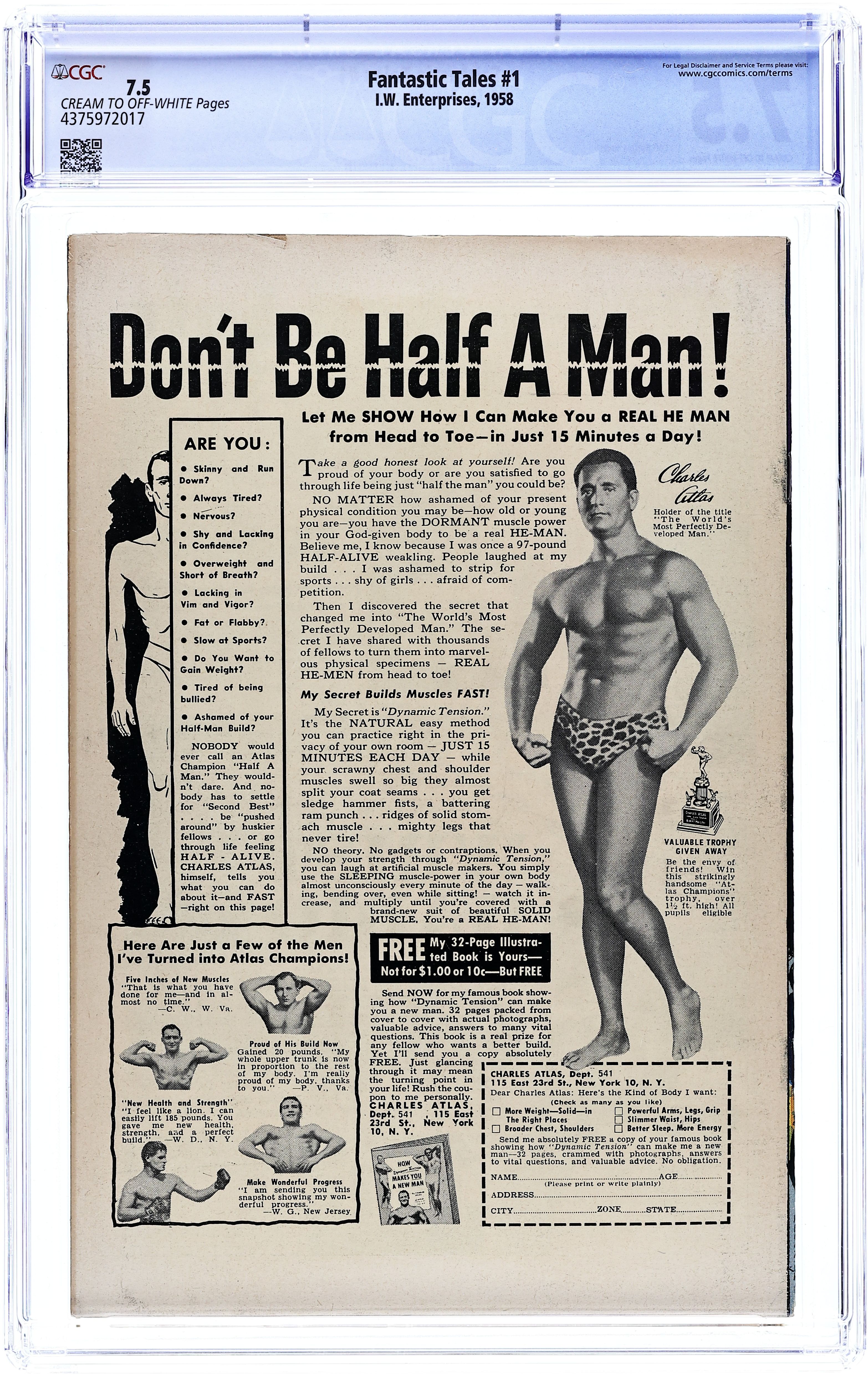 Published 1958 by I.W. Enterprises.Fantastic Tales (1958 I.W. Reprint) 1 CGC 7.5