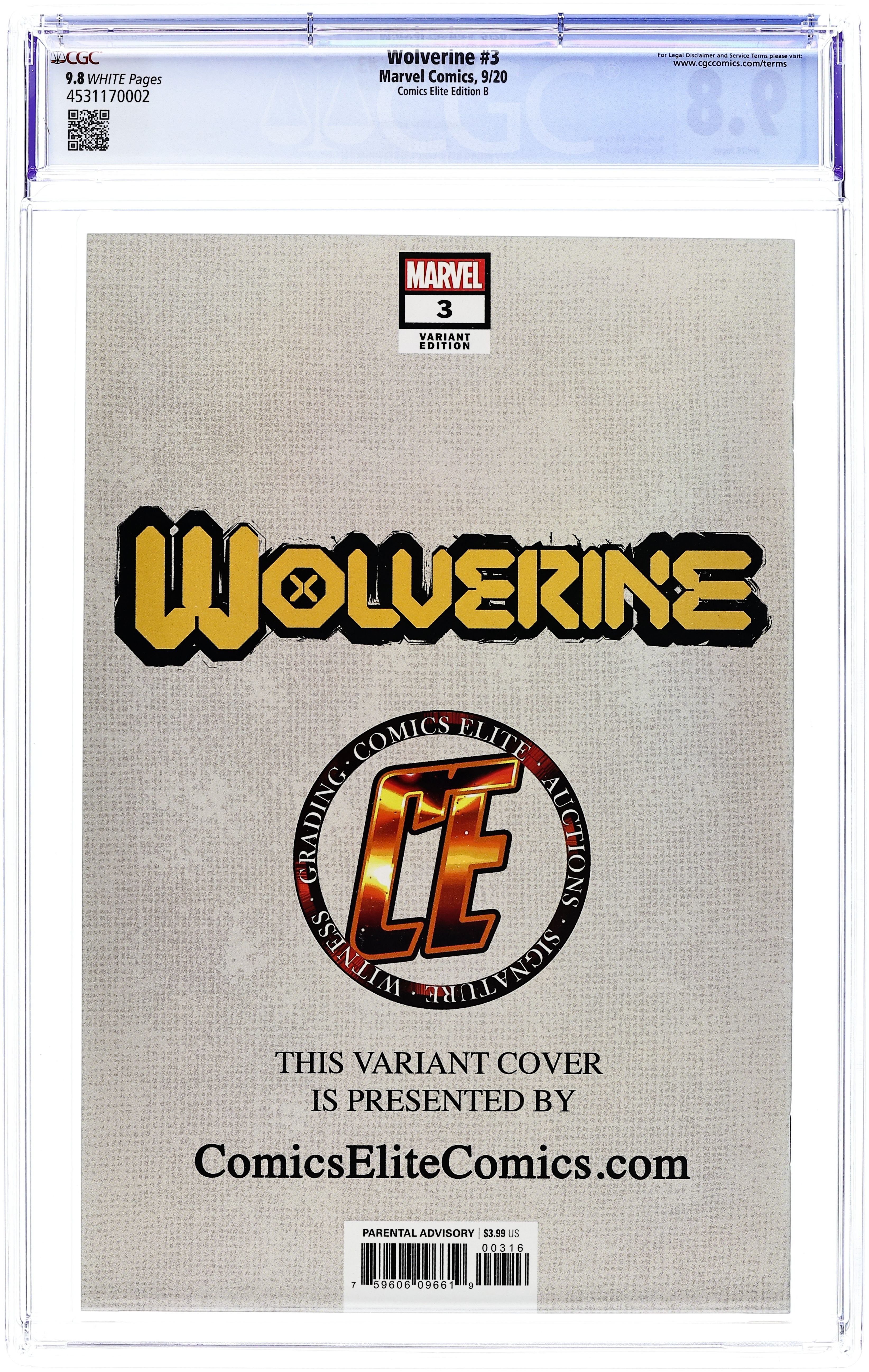 Wolverine (2020 6th Series) 3CE.B CGC 9.8 Granov Comics Elite Virgin Variant