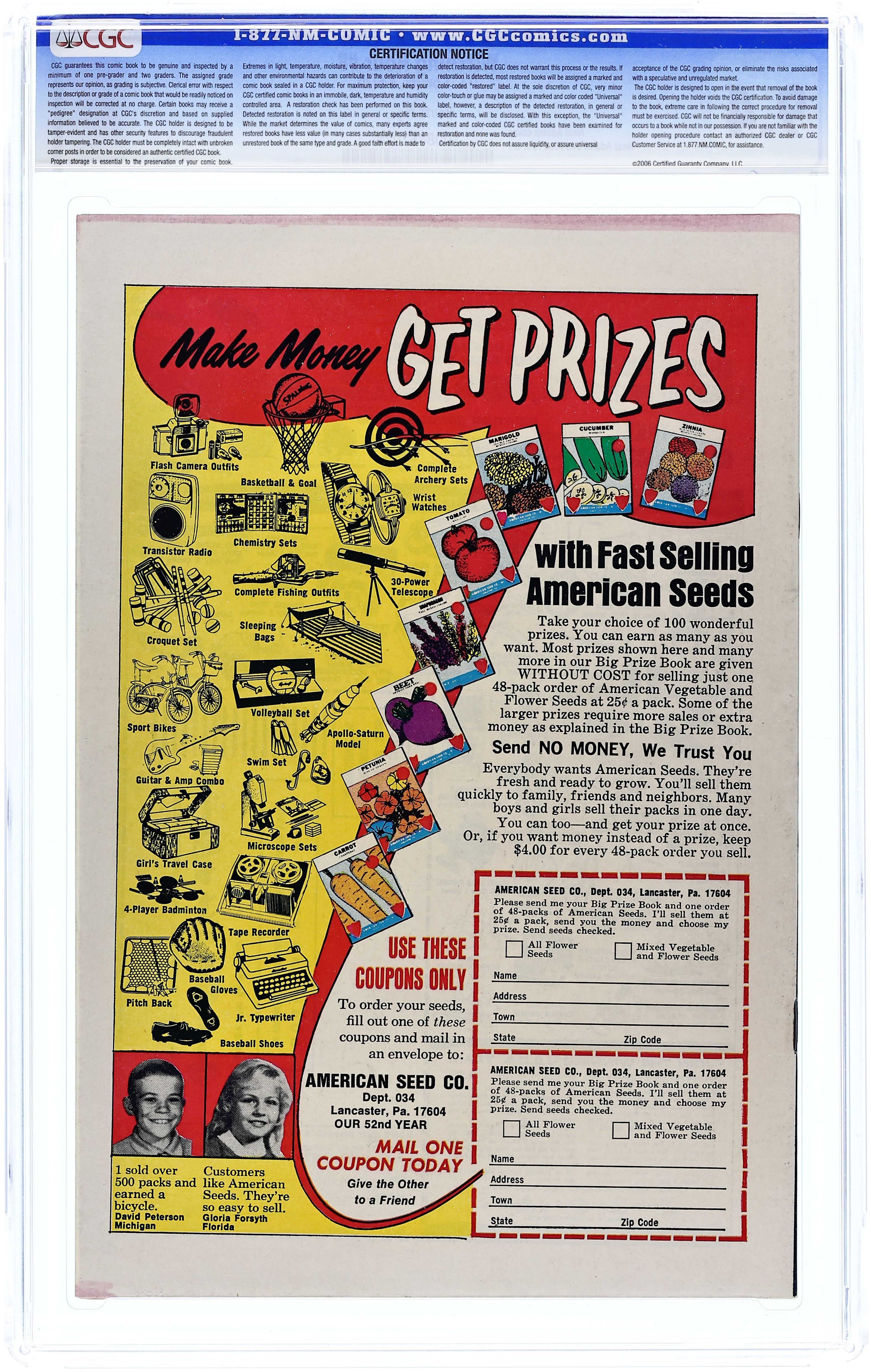 5-page prologue/epilogue with art by Neal Adams. Stories: "Above and Beyond the Call of Duty!" (art by Adams; 6 pages); "Three Day Free Home Trial!" (art by Nick Cardy; 6 pages); "Computerr" (script and art by Alex Toth; 6 pages); and "Twice-Told Tales: The Sign of the Hook!" One-page text story, "The Career Man." Adams cover. 36 Pages, Full Color. Cover price $0.15. Grade: CGC 9.4 explanation of grade Condition: Used (collectible)