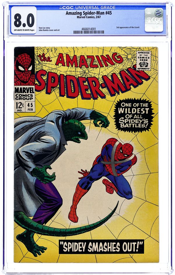 Tags: Marvel Legacy Numbering: Amazing Spider-Man (part 45), Spider-ManAmazing Spider-Man (1963 1st Series) 45 CGC 8.0