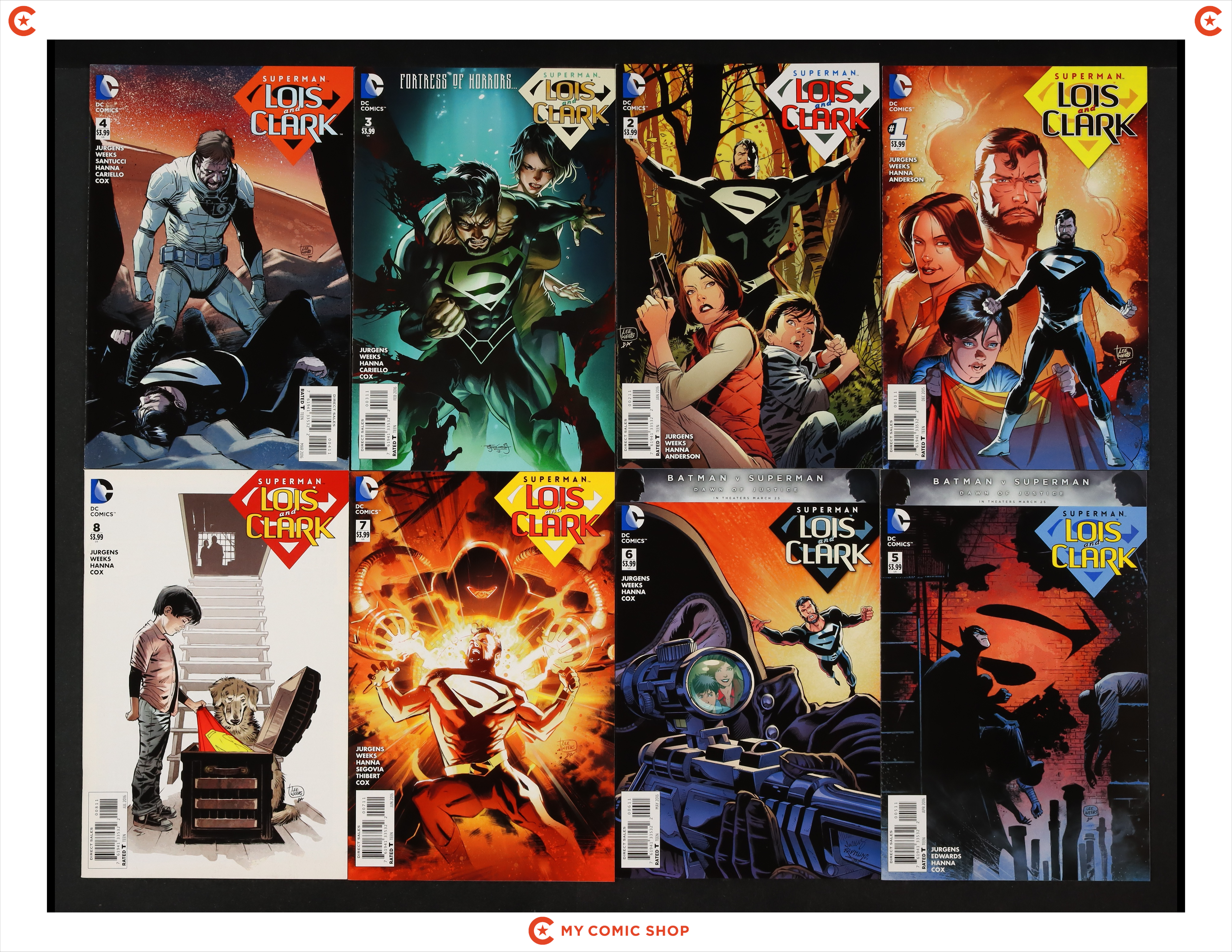 Issues 1A, 2, 3, 4A, 5A, 6, 7A, 8 of Superman Lois and Clark (2015). Most will grade in the VF to NM range.