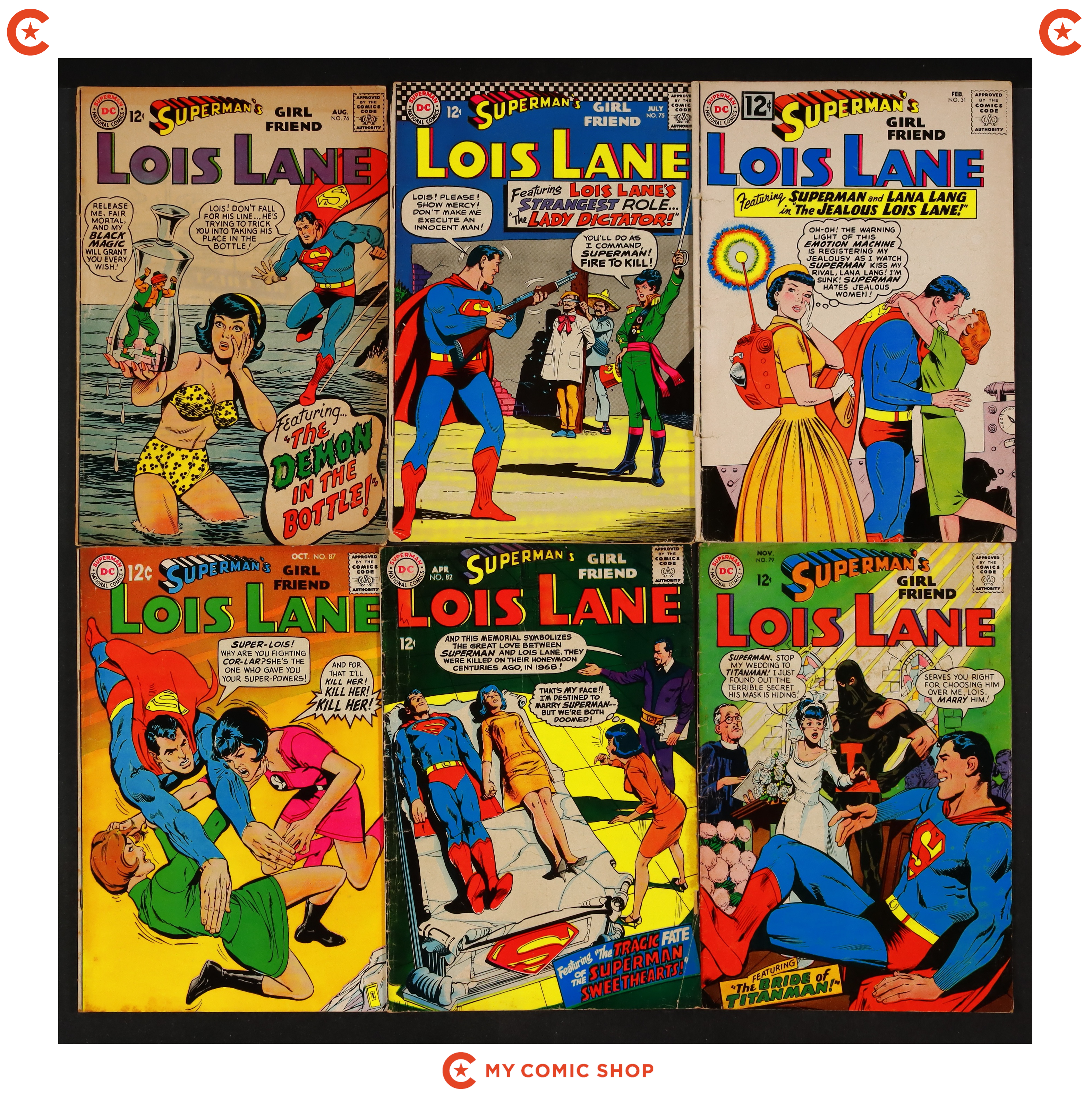 Issues 31, 75, 76, 79, 82, 87, 90, 93, 95, 97, 98, and 100 of Superman's Girlfriend Lois Lane (1958). Most will grade in the GD to VG range.
