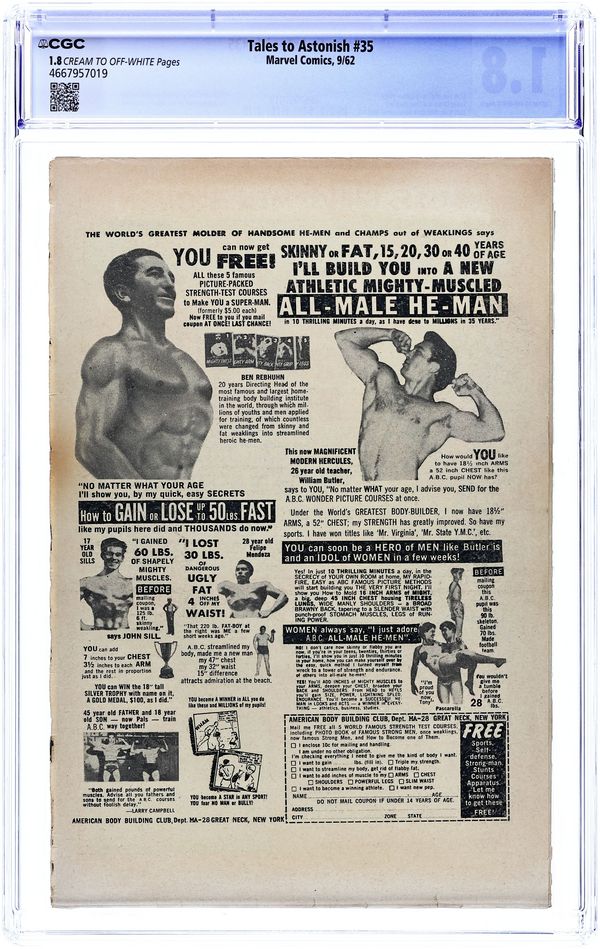 Tags: Marvel Legacy Numbering: Hulk (part 35)Tales to Astonish (1959-1968 1st Series) 35 CGC 1.8