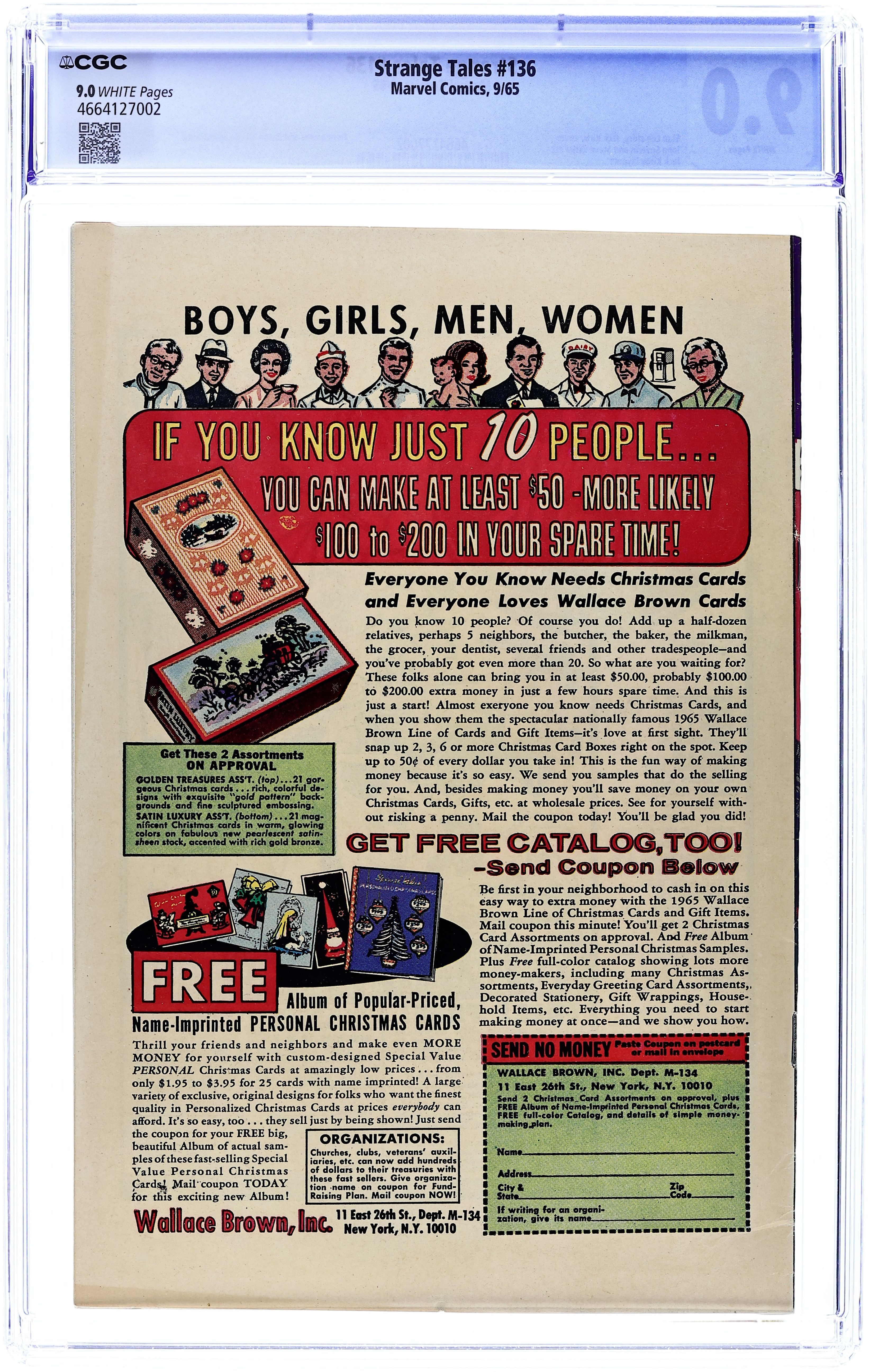 Tags: Marvel Legacy Numbering: Doctor Strange (part 136), Fantastic FourStrange Tales (1951 1st Series) 136 CGC 9.0