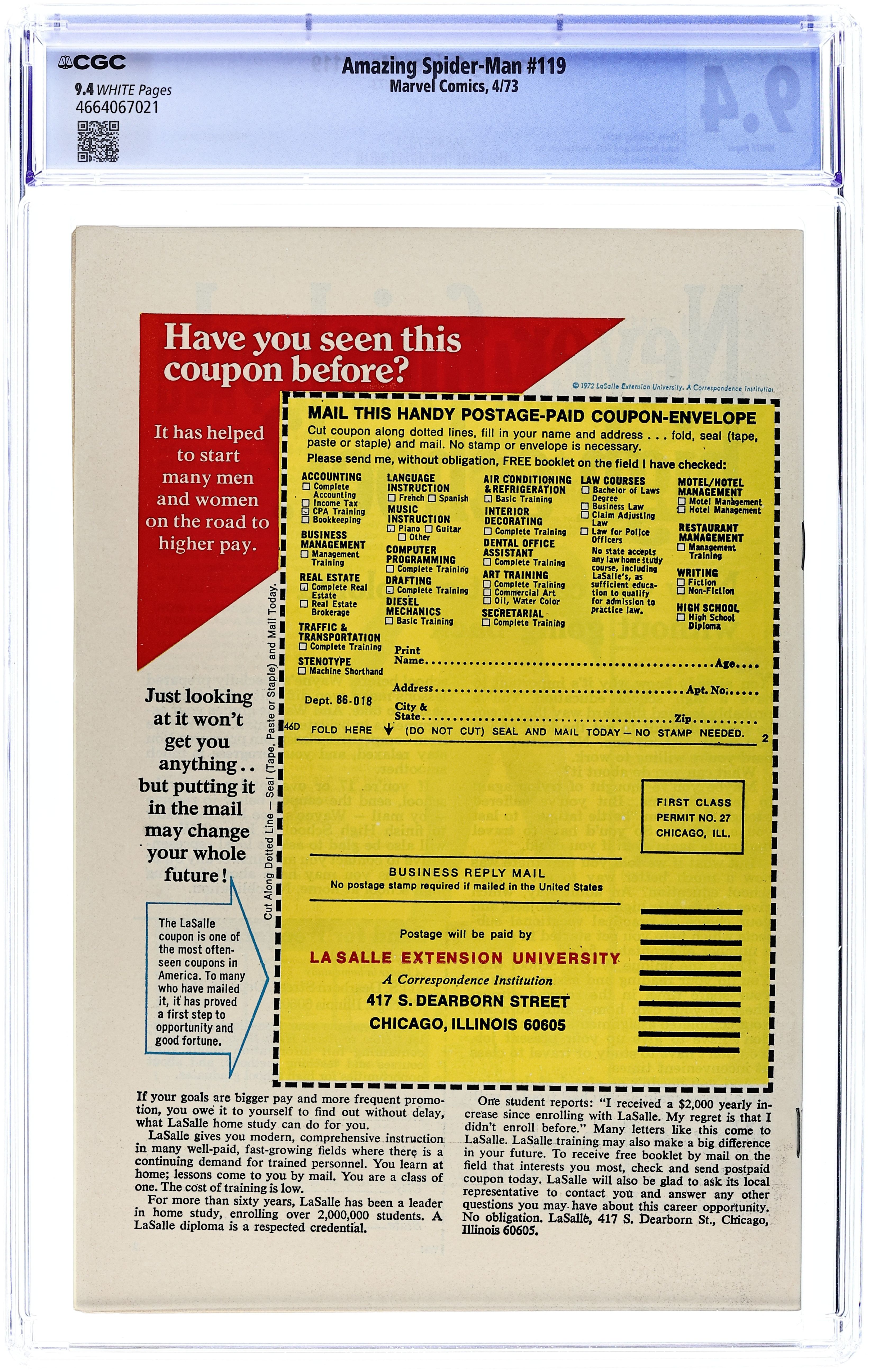 Tags: Marvel Legacy Numbering: Amazing Spider-Man (part 119), Spider-ManAmazing Spider-Man (1963 1st Series) 119 CGC 9.4