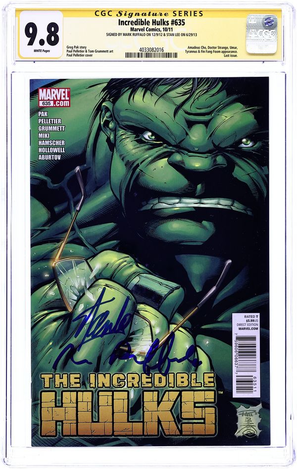 Tags: Marvel Legacy Numbering: Hulk (part 634), HulkIncredible Hulks (2010 Marvel) 635A CGC 9.8 SS Ruffalo/Stan Lee Pelletier