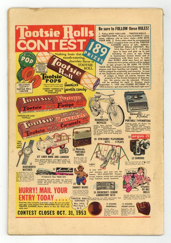 Cover art by Win Mortimer. The Super-Charged Superboy, script by Jerry Coleman, art by John Sikela; A criminal scientist electrifies Superboy with millions of volts, so that he can't go near anybody. The Outlaw Navy starring Aquaman, art by Ramona Fradon. Little Pete humor page by Henry Boltinoff. The Treasure of the Lost City starring Johnny Quick, art by Ralph Mayo. The 50th Century Bowmen, art by George Papp; Green Arrow and Speedy accidentally visit the future. 44 pages, Full Color. Cover price $0.10. Grade: GD/VG 3.0 explanation of grade Condition: Used (collectible)