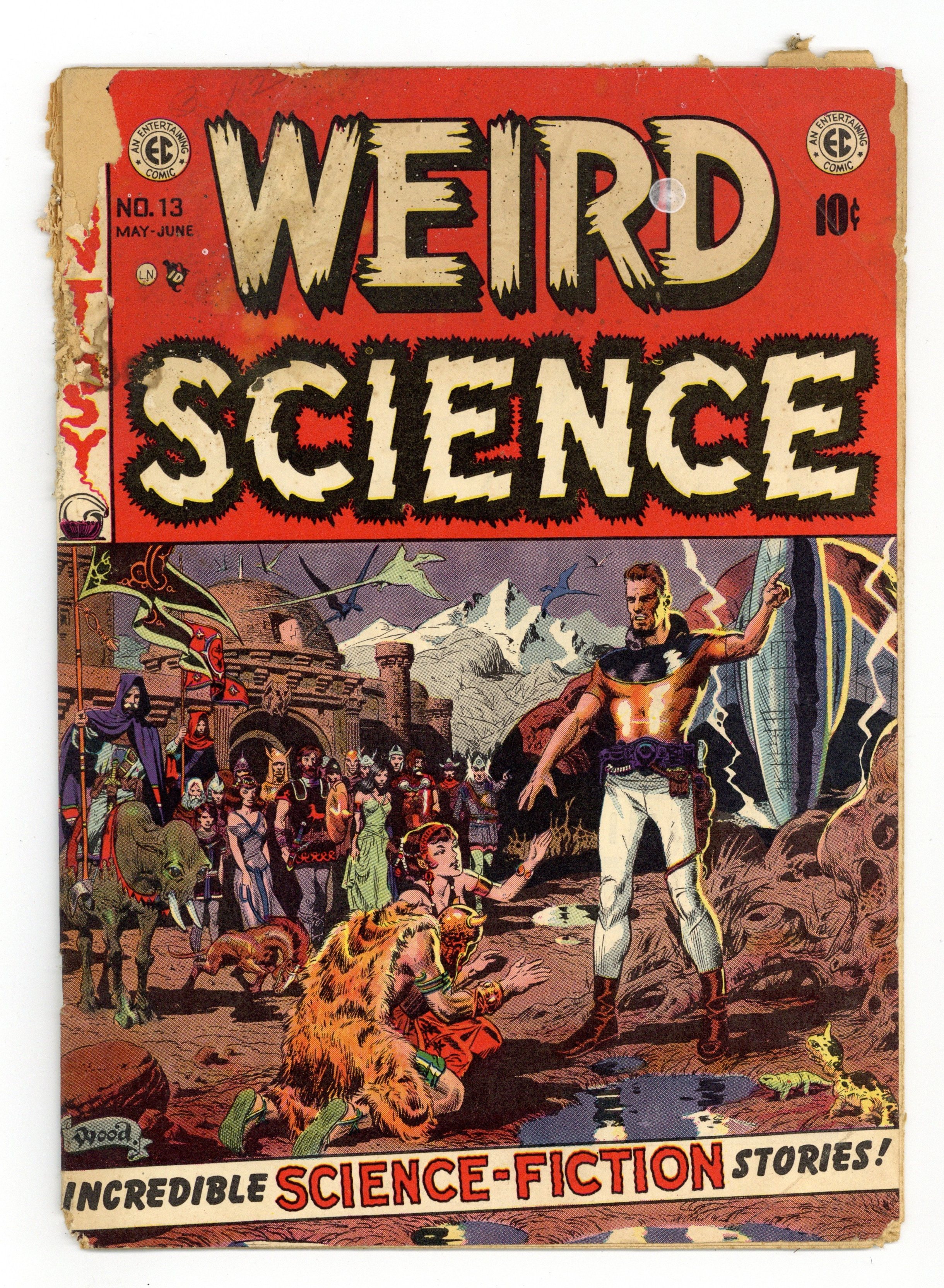 Cover by Wally Wood. Stories by Bill Gaines and Al Feldstein. Art by Jack Kamen, Wally Wood and Joe Orlando. NOTE: There are two issues in this series numbered 13. The one dated May/June 1950 is issue # 2 in the series. The issue pictured here, dated May/June 1952, is the actual # 13 in the series. EC's influential New Trend title featured some legendary sci-fi and comics artists. A scientist and his mistress decide to use a suspended-animation serum so they can be together in the future, but that future is farther away than they think. A space mission is endangered by a stowaway, in a Wally Wood story published before the similar science fiction classic "The Cold Equations." In another Wood story, a stranded space traveler on a primitive planet becomes a messianic figure. Science-fantasy cover by Wally Wood. A Weighty Decision; Saving for the Future; He Walked Among Us; Say Your Prayers. 36 pages, Full Color. Cover price $0.10. Grade: PR 0.5 explanation of grade Condition: Used (collectible)