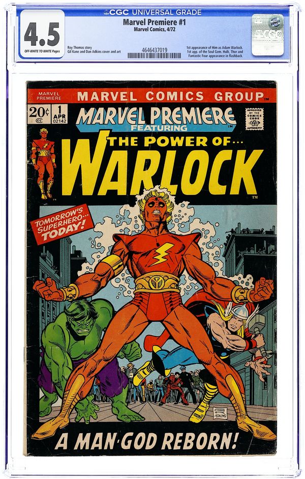 Starts Dec 15 Origin of Warlock and Counter-Earth in "And Men Shall Call Him Warlock!" Script by Roy Thomas, pencils by Gil Kane, inks by Dan Adkins. This is the first appearance of Warlock, who was previously the character "Him" in Fantastic Four (see issues 66 and 67) and Thor (issues 165, 166) comics. High Evolutionary guest stars. Brief appearances by the Hulk and Thor. Kane/Adkins cover. Cover price $0.20. Grade: CGC 4.5 explanation of grade Condition: Used (collectible)