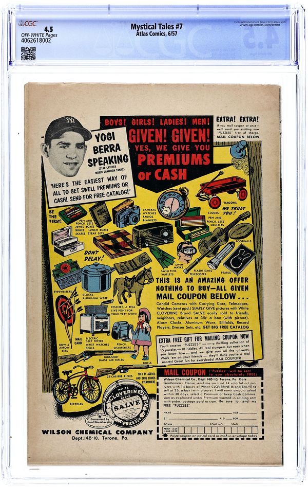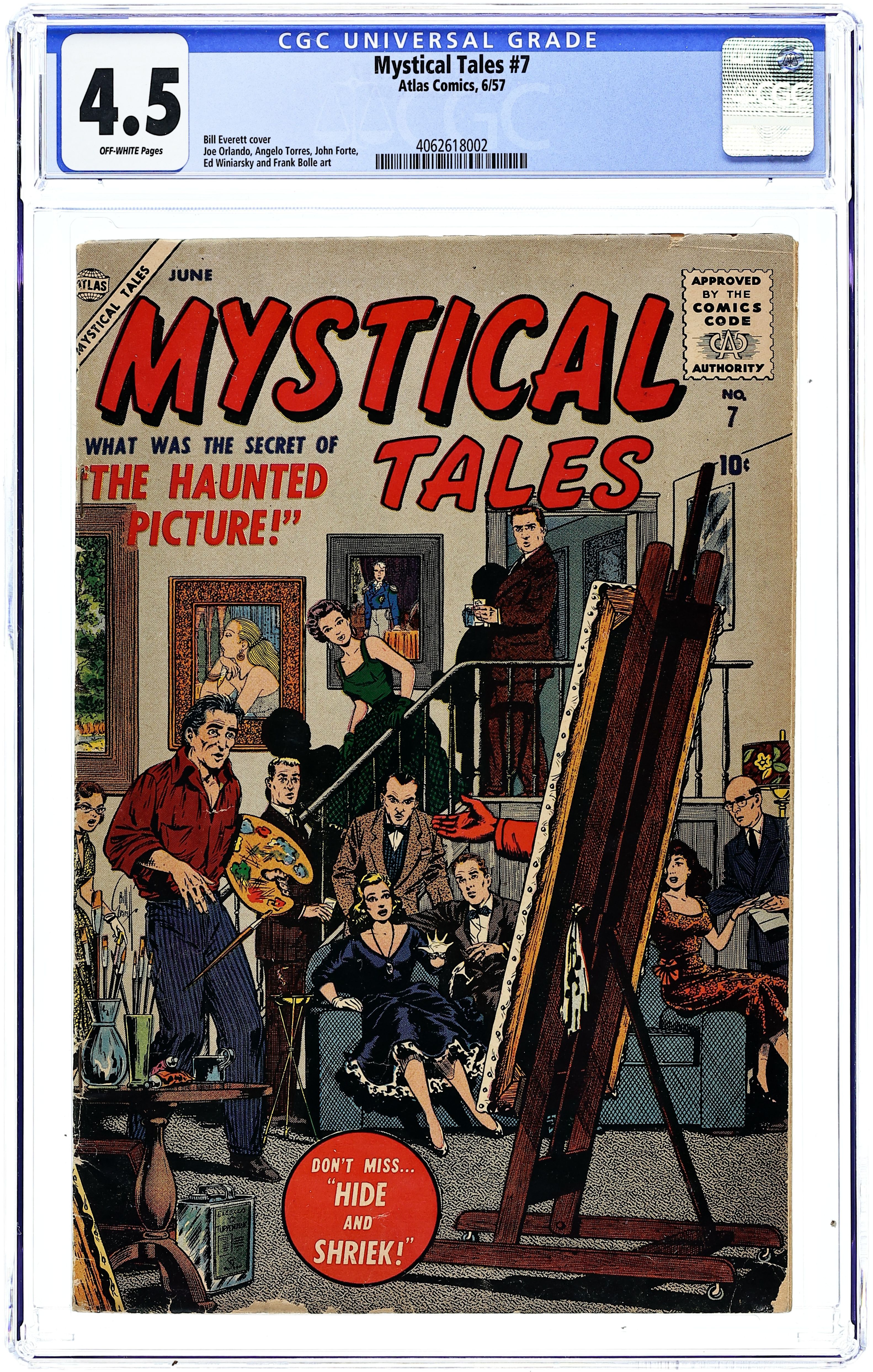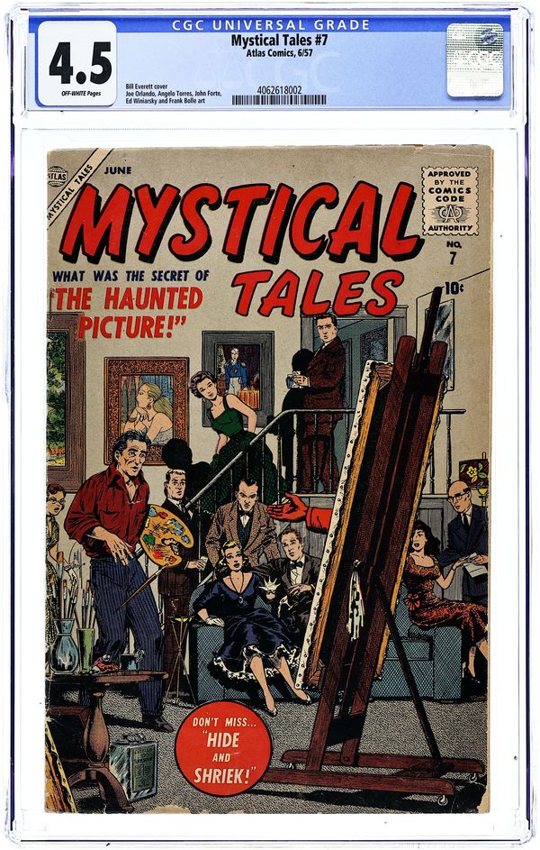 "The Secret of the Haunted Picture" (art by Angelo Torres), "Hide and Seek" (art by John Forte), "The Living Shadows," "It Happened in the Attic!" (art by Frank Bolle), "Too Smart to Live," "The Man Who Can't Be Stopped" (art by Joe Orlando), and a two-page text story, "Mystery Within the Walls." Bill Everett cover. Cover price $0.10. Grade: CGC 4.5 explanation of grade Condition: Used (collectible)