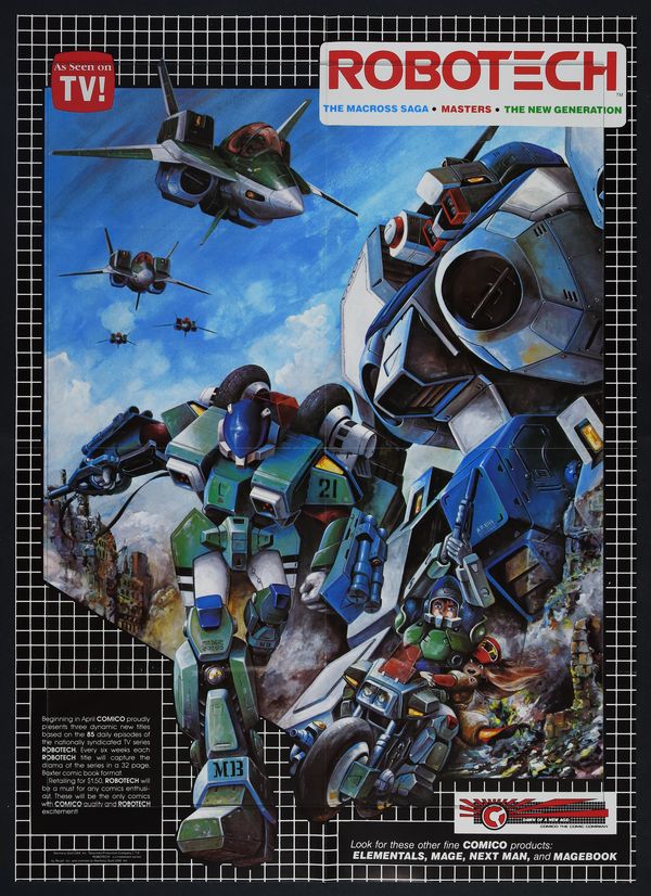 Robotech Promotional PosterPublished by Comico.- Hight quality print on heavy stock. Poster is folded as originally issued. 20" X 27 5/8".