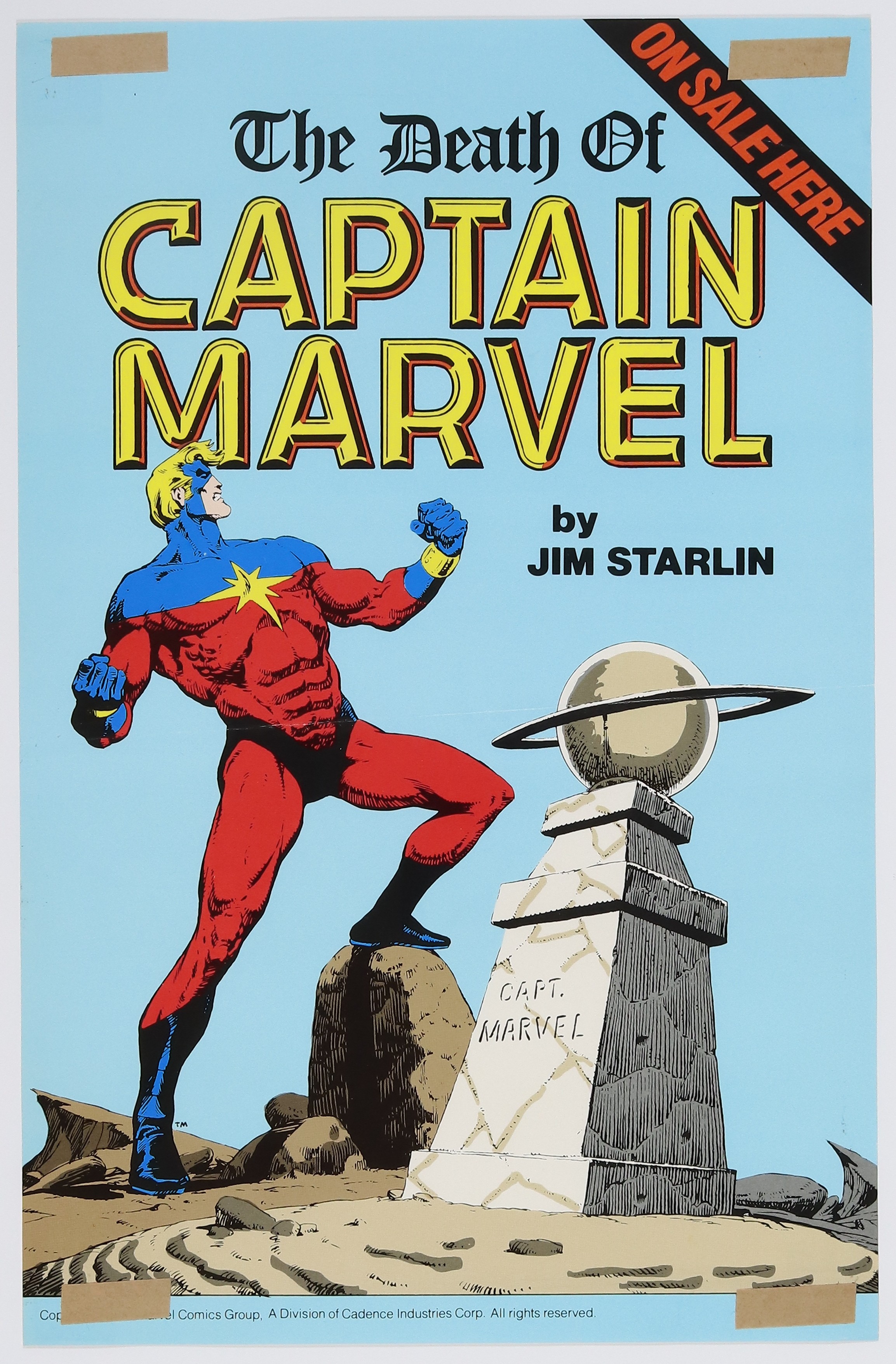 Death of Captain Marvel Promotional PosterPublished by Marvel.- Adhesive strips on front and back of poster have not been unsealed. High quality print on poster stock. 11" x 17". Note: Poster has been bent/folded.